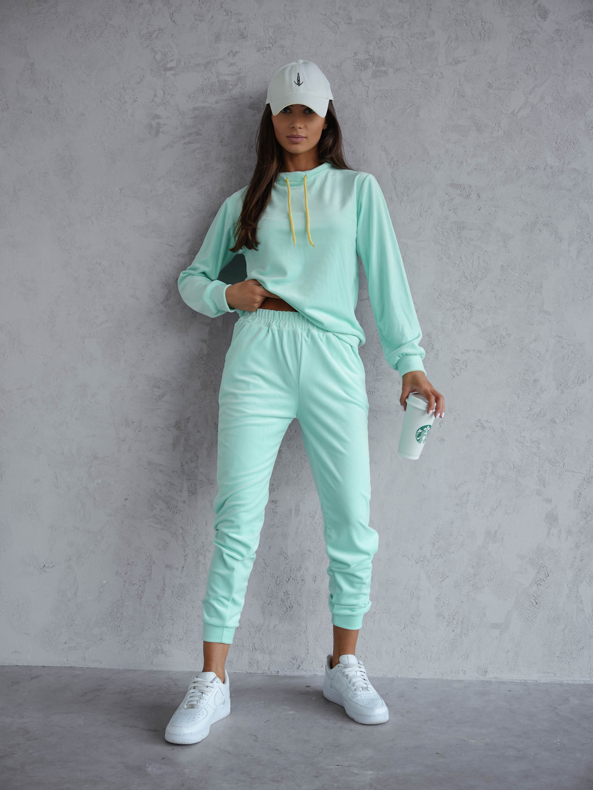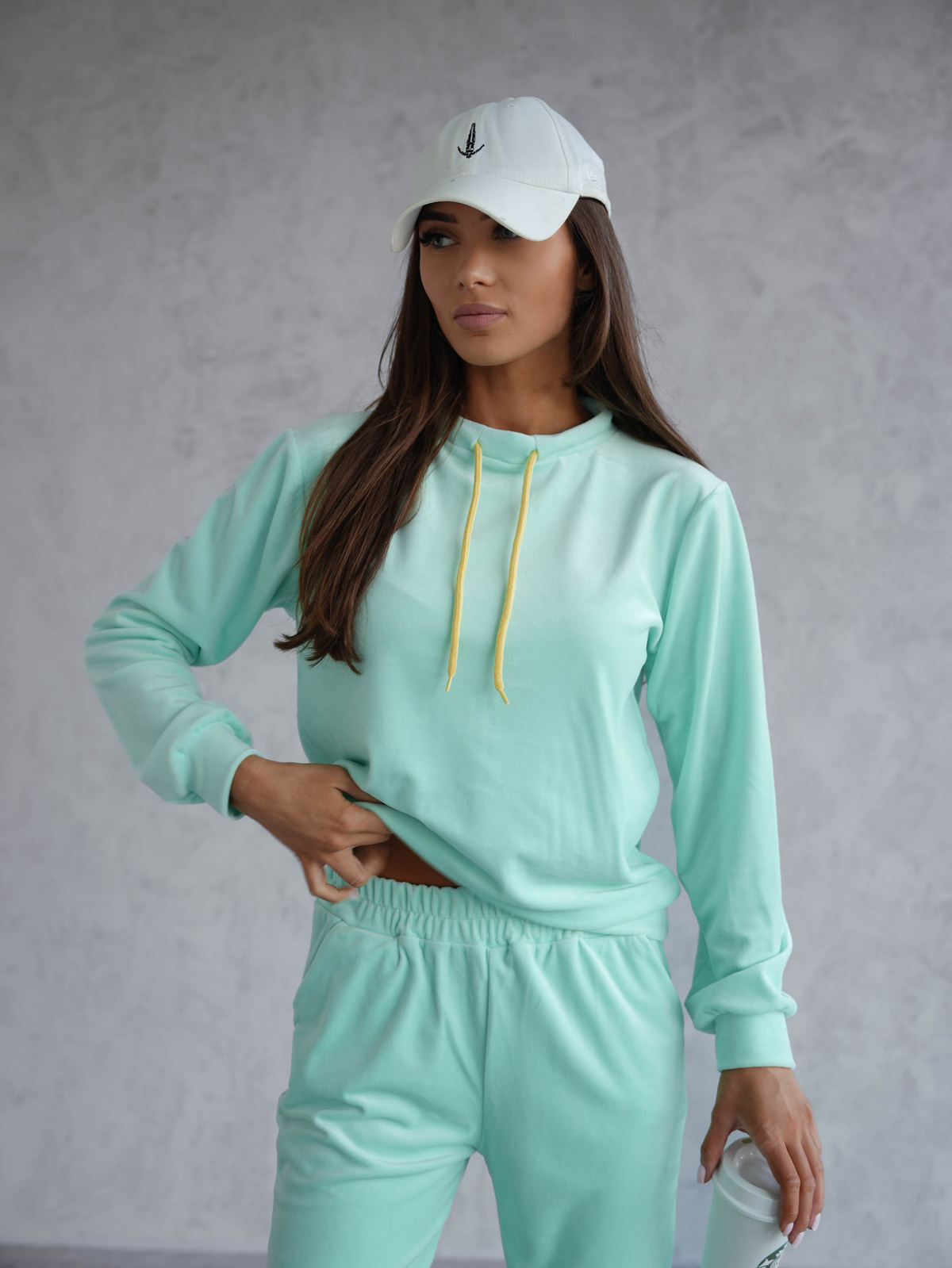 KOMPLET DRESOWY WELUROWY Z KONTRASTOWYMI SZNURKAMI- MIĘTOWY