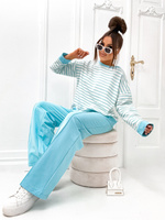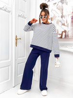 KOMPLET DRESOWY BLUZA W PASKI+ SPODNIE Z PRZESZYCIAMI- GRANATOWY