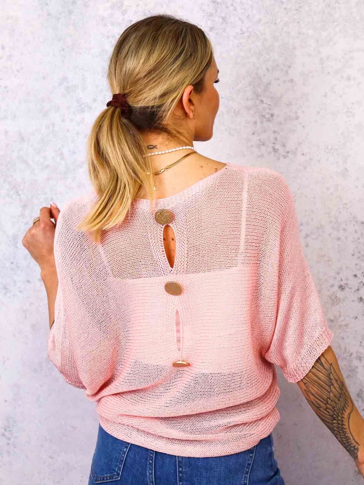 SWETER O KROJU NIETOPERZA Z OZDOBNYMI GUZIKAMI- RÓŻOWY