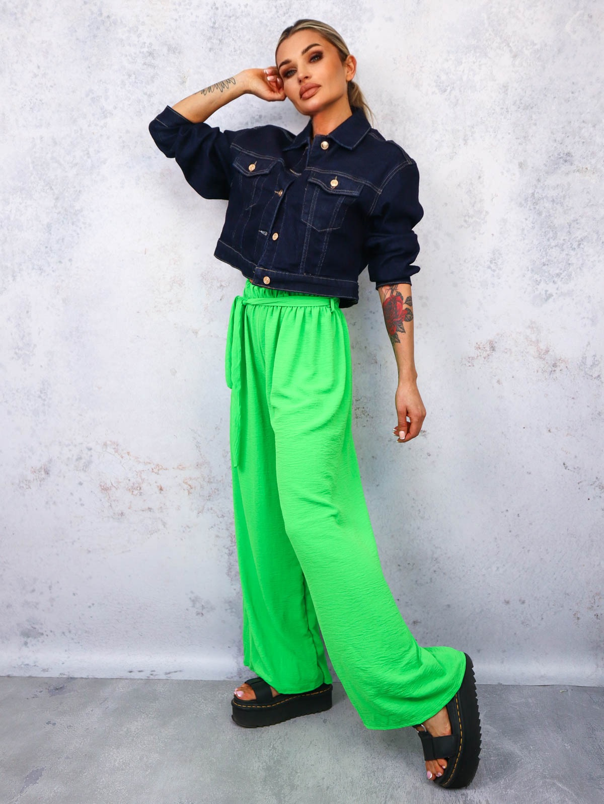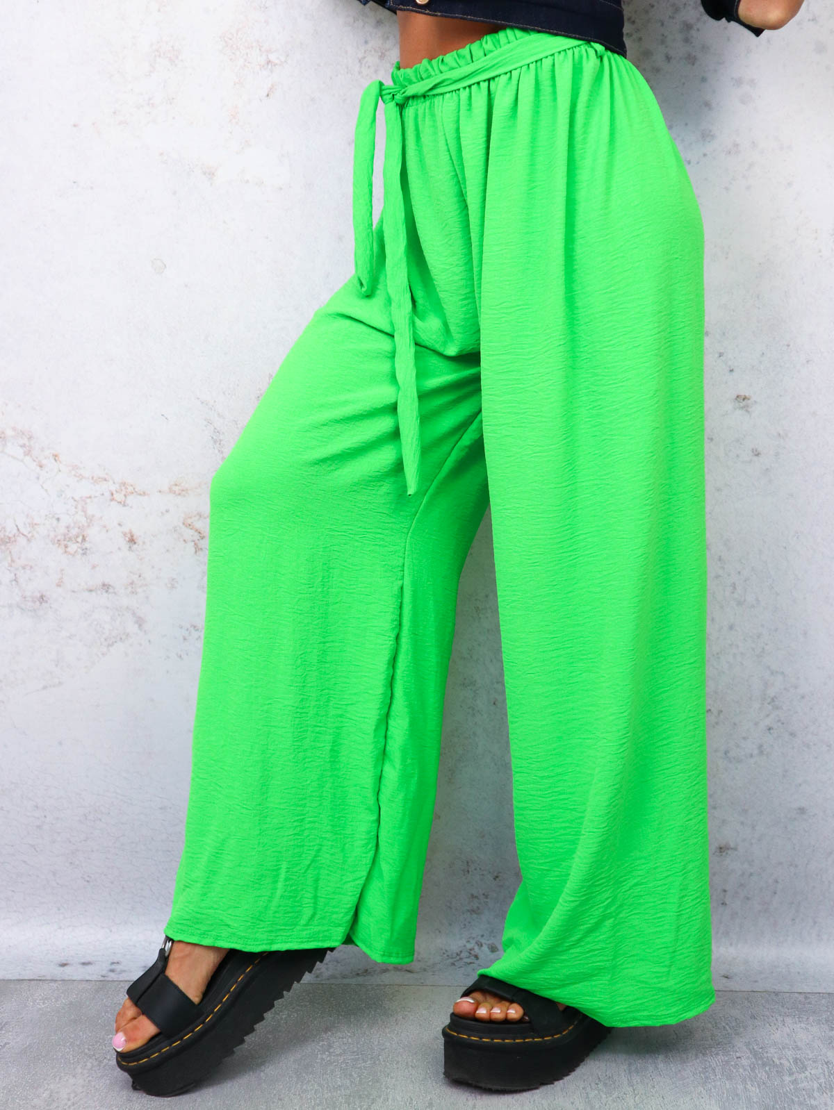 SPODNIE SZEROKIE Z GUMĄ I WIĄZANIEM W PASIE- ZIELONE