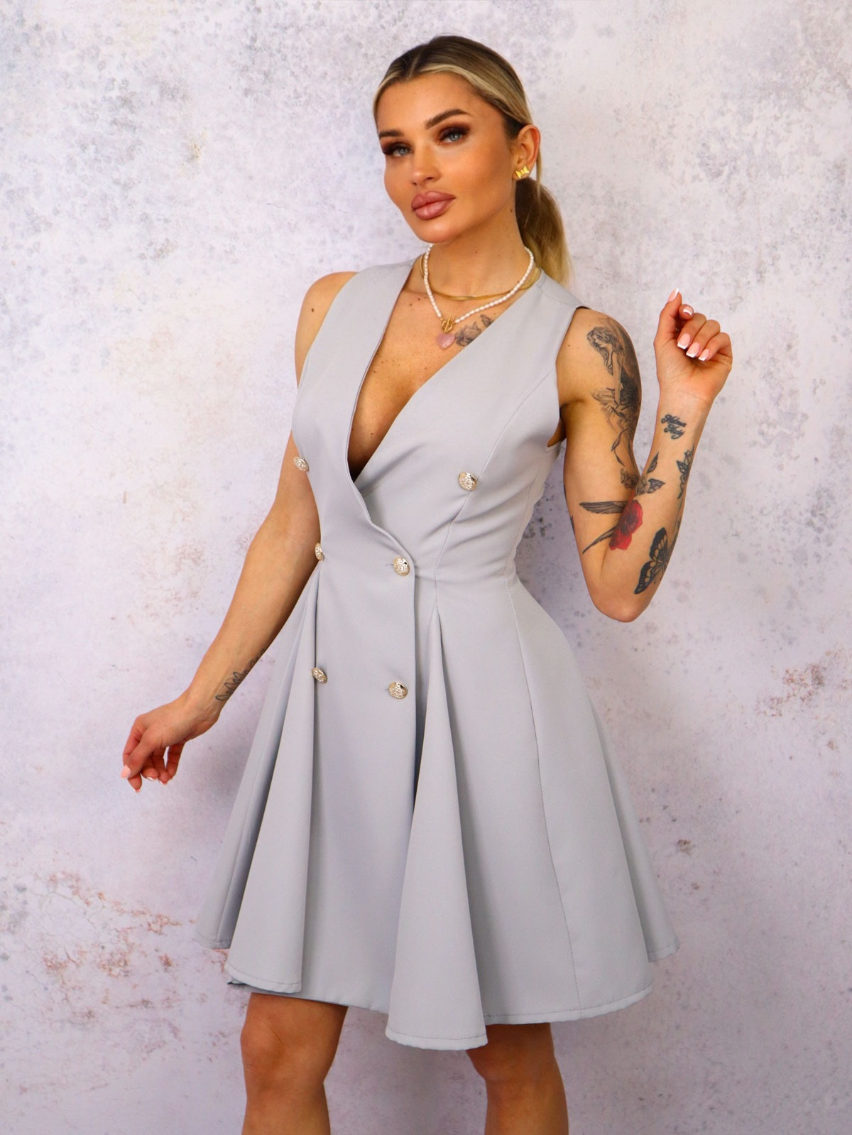 SUKIENKA MINI Z GUZIKAMI- SZARA