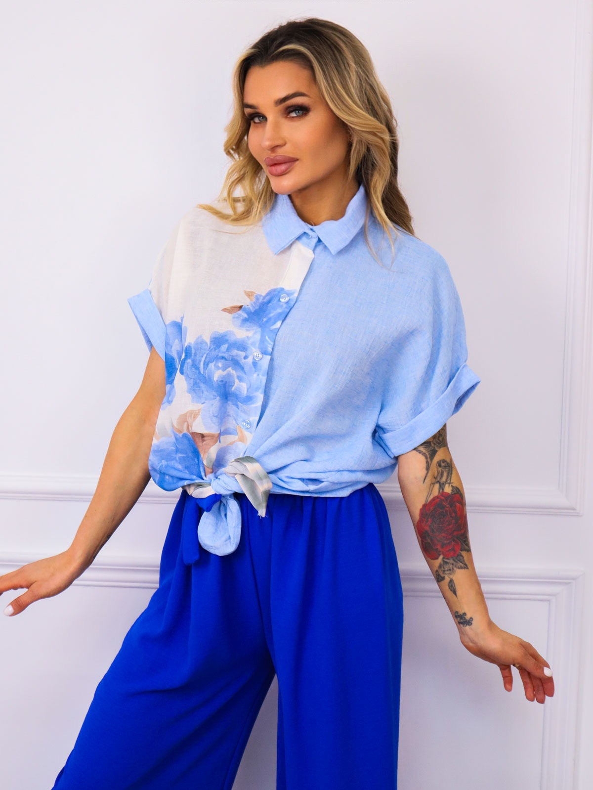 KOSZULA OVERSIZE Z KWIECISTYM NADRUKIEM- NIEBIESKA