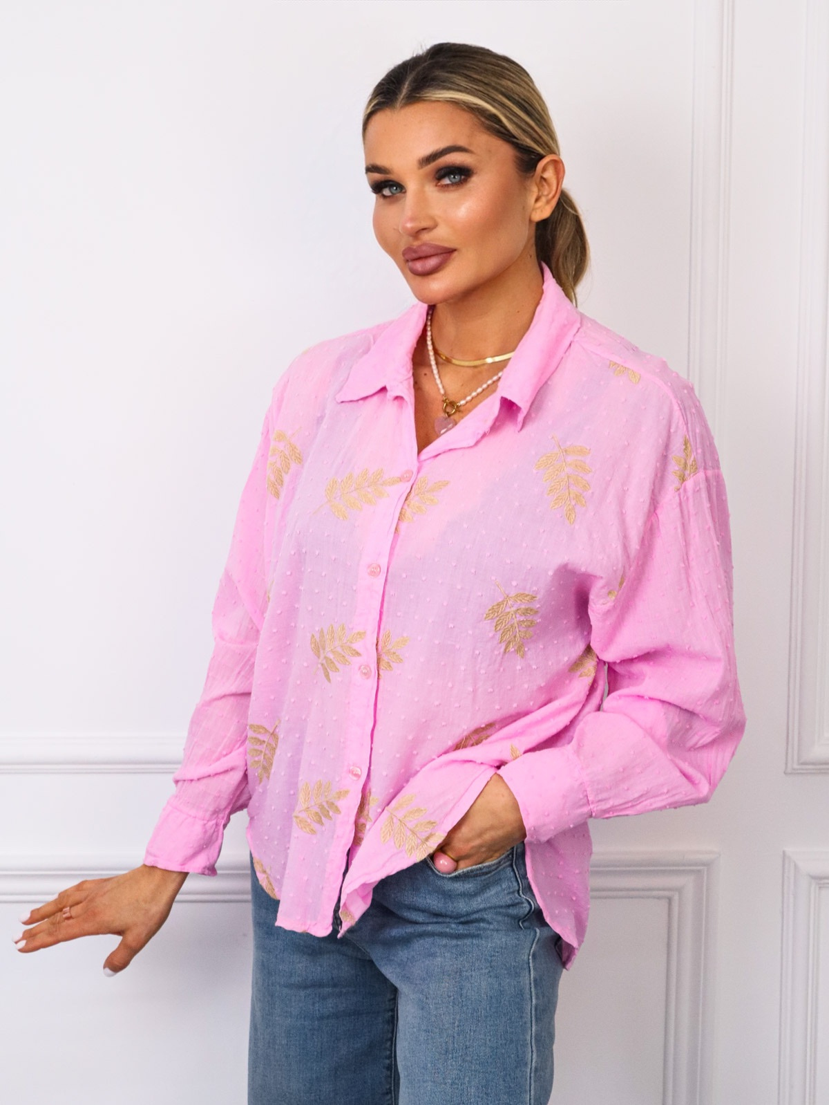 KOSZULA Z OZDOBNYM HAFTEM Z PRZODU- RÓŻOWA
