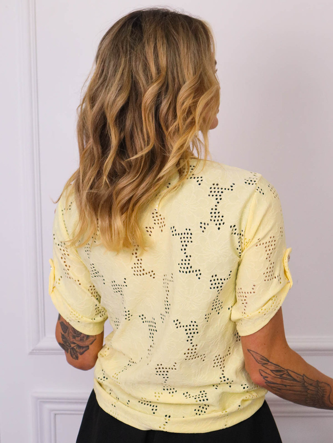 AŻUROWA BLUZKA Z KORONKĄ PRZY DEKOLCIE- ŻÓŁTA