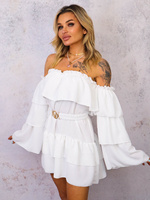 KOMBINEZON HISZPANKA Z FALBANAMI I PASKIEM- BIAŁY