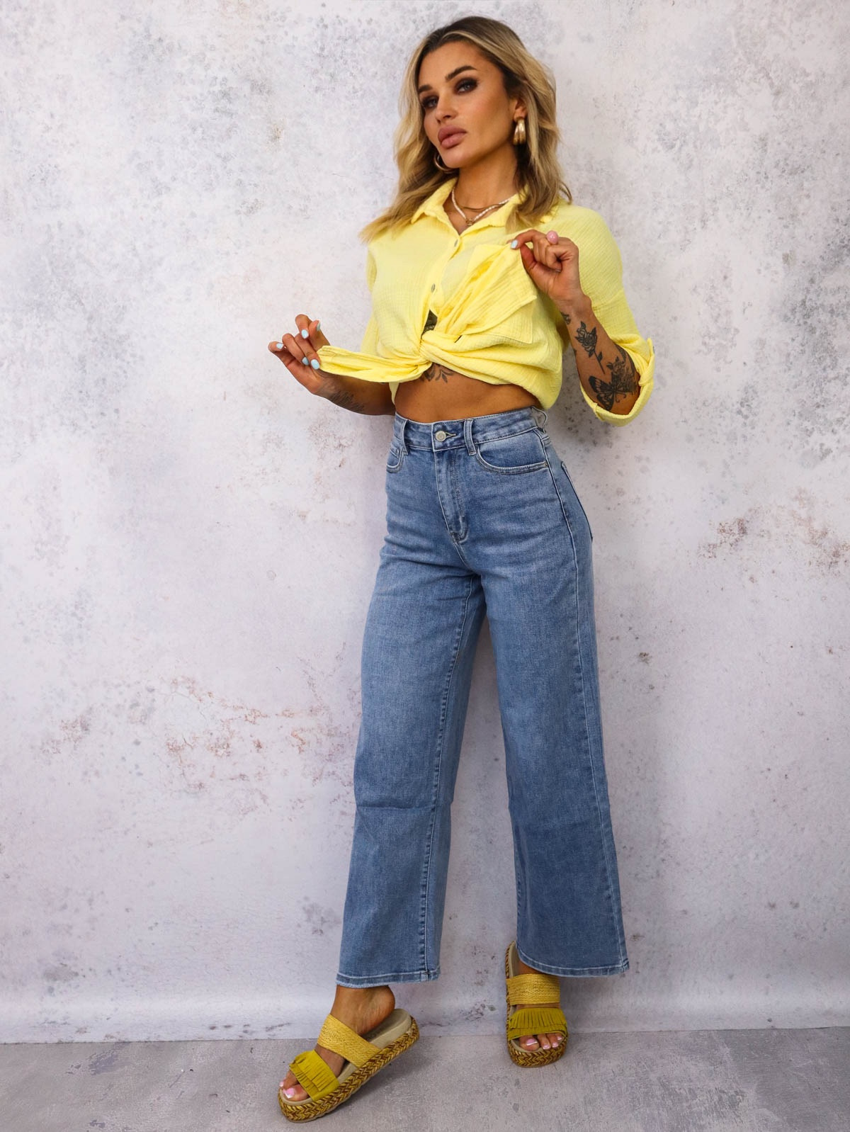 SPODNIE JEANSOWE Z SZEROKIMI NOGAWKAMI I WYSOKIM STANEM