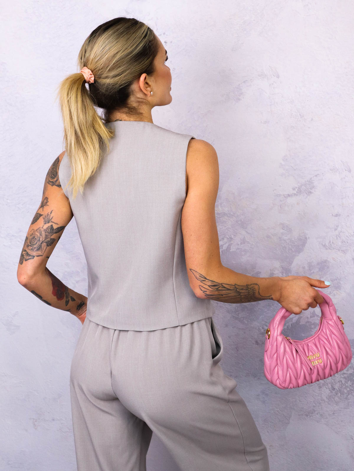 KOMPLET KAMIZELKA+ SPODNIE Z SZEROKIMI NOGAWKAMI- SZARY