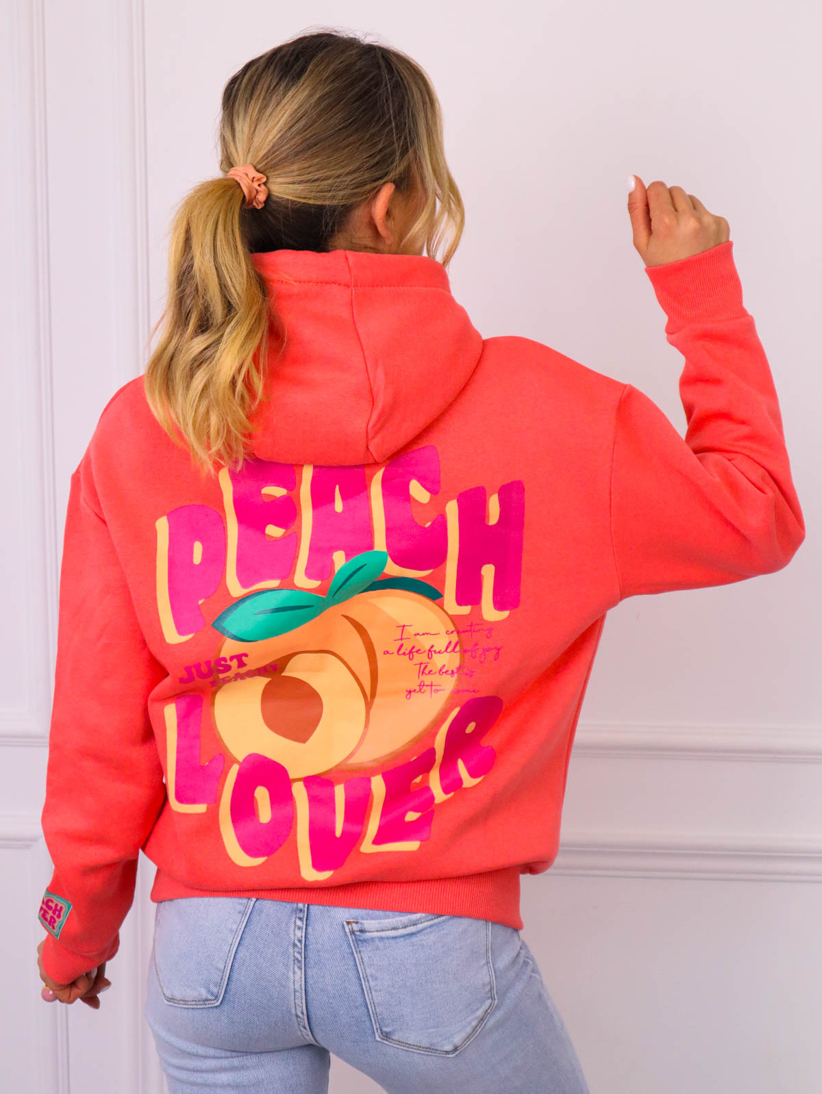 BLUZA Z KAPTUREM Z APLIKACJĄ Z PRZODU I NA PLECACH- POMARAŃCZOWA
