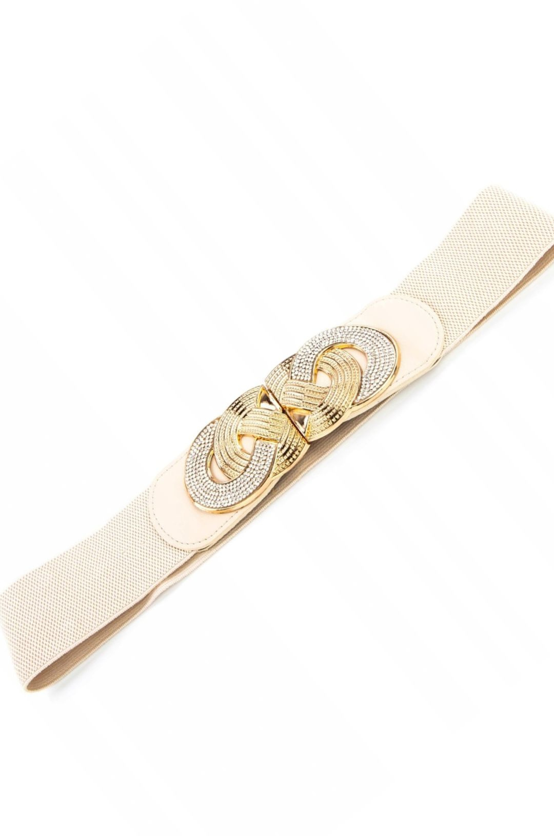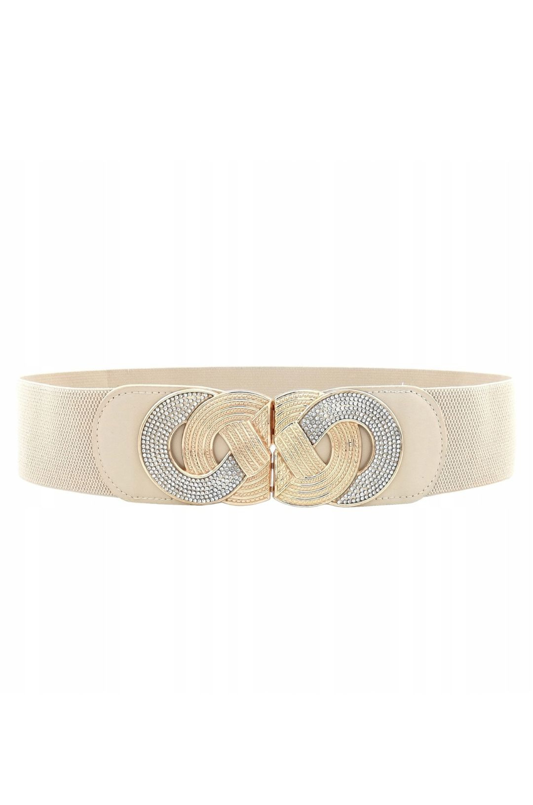 PASEK NA GUMIE ZE ZŁOTA KLAMRĄ- BEŻOWY