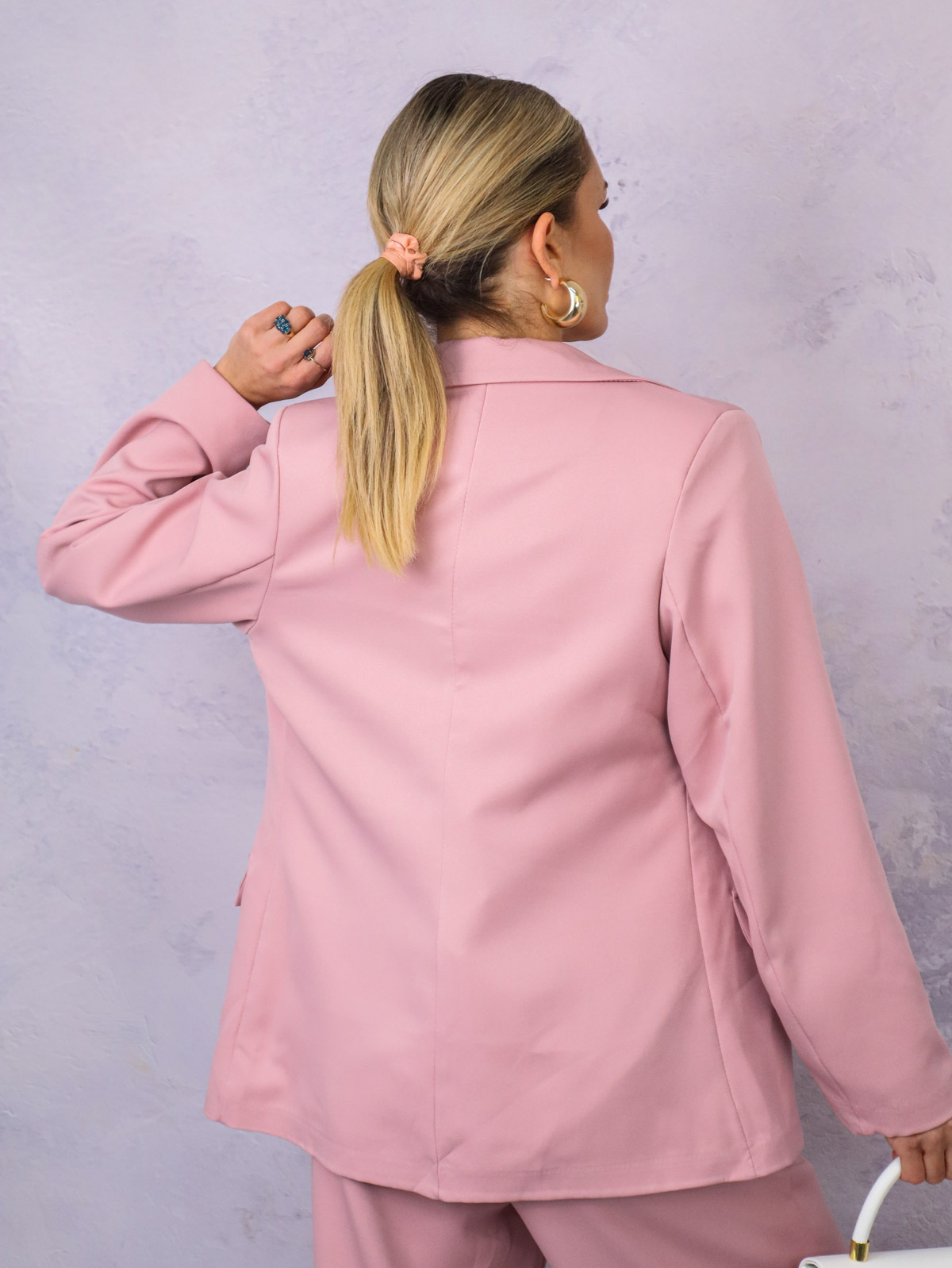 KOMPLET ELEGANCKI MARYNARKA+ SPODNIE- PUDROWORÓŻOWY