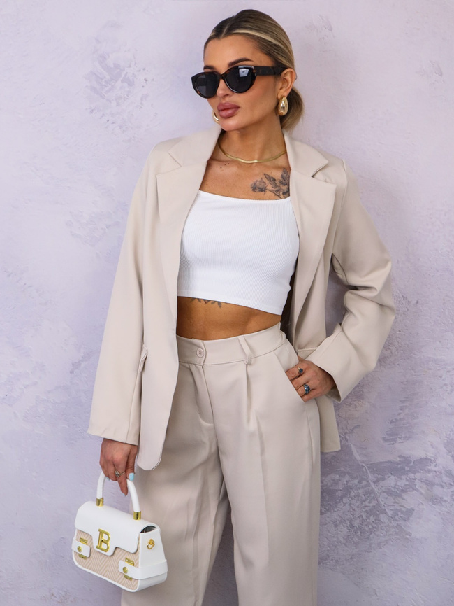 KOMPLET ELEGANCKI MARYNARKA+ SPODNIE- BEŻOWY