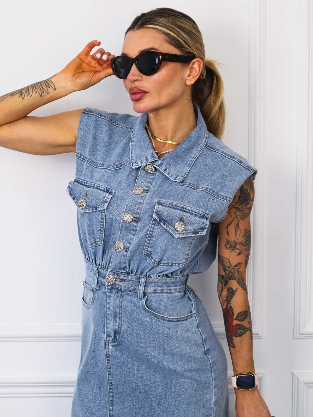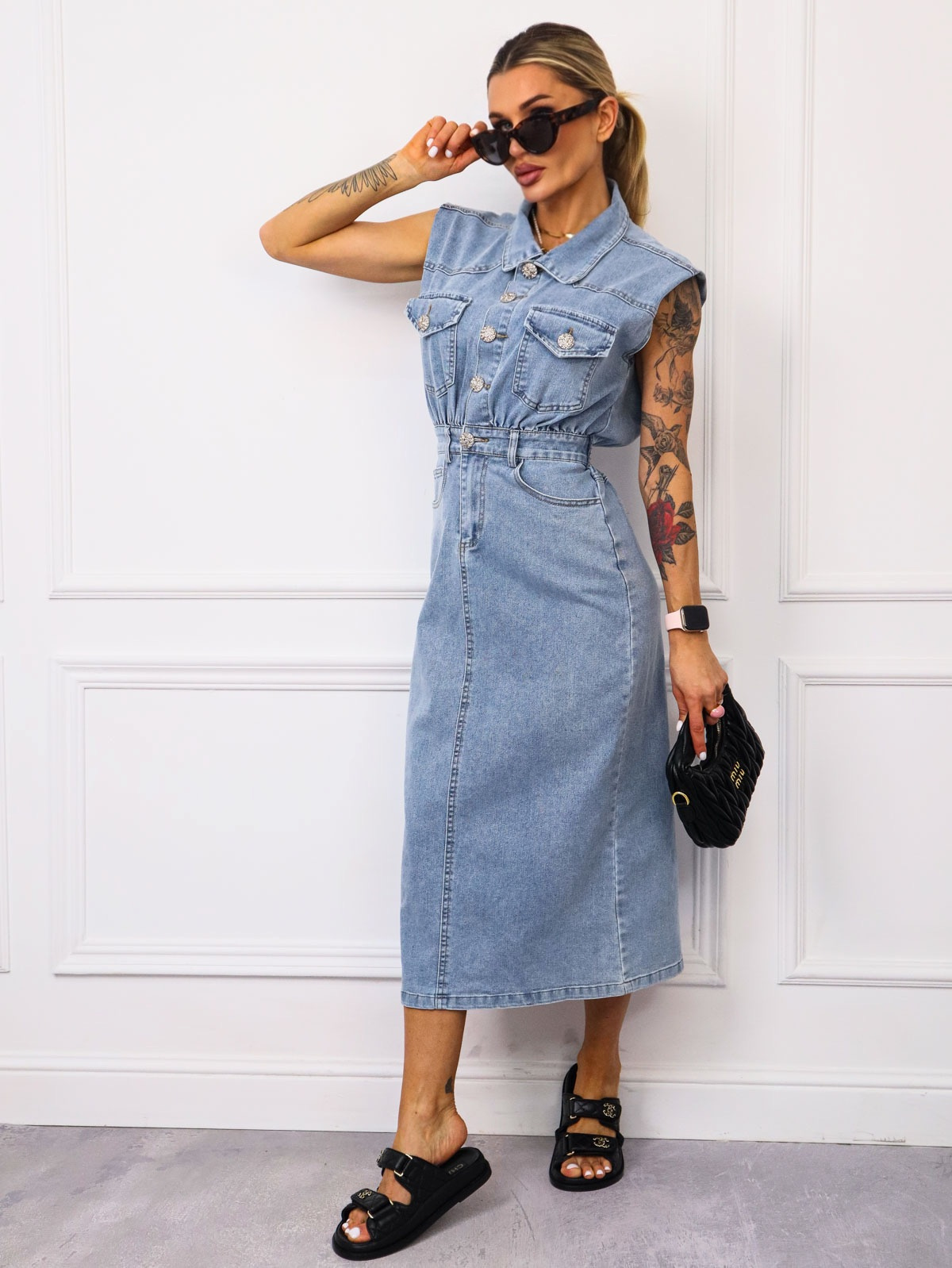 SUKIENKA JEANSOWA MIDI Z KIESZENIAMI