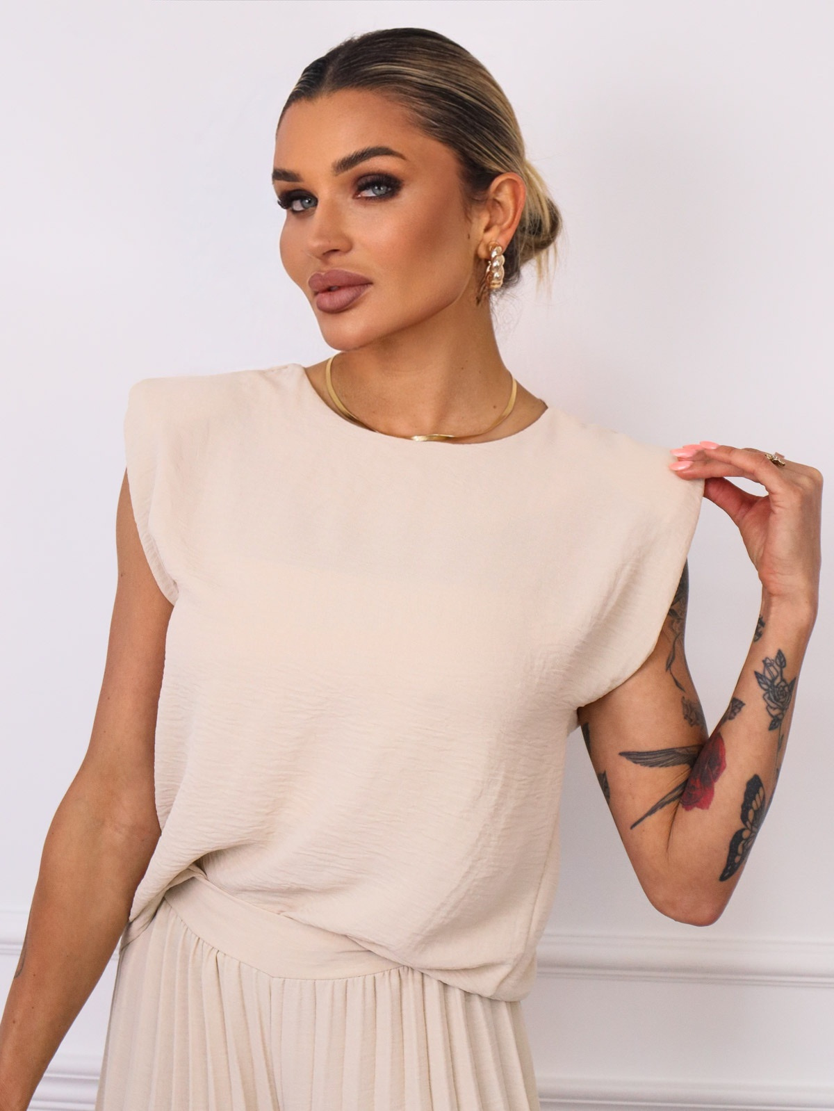 KOMPLET BLUZKA+ SZEROKIE PLISOWANE SPODNIE- BEŻOWY