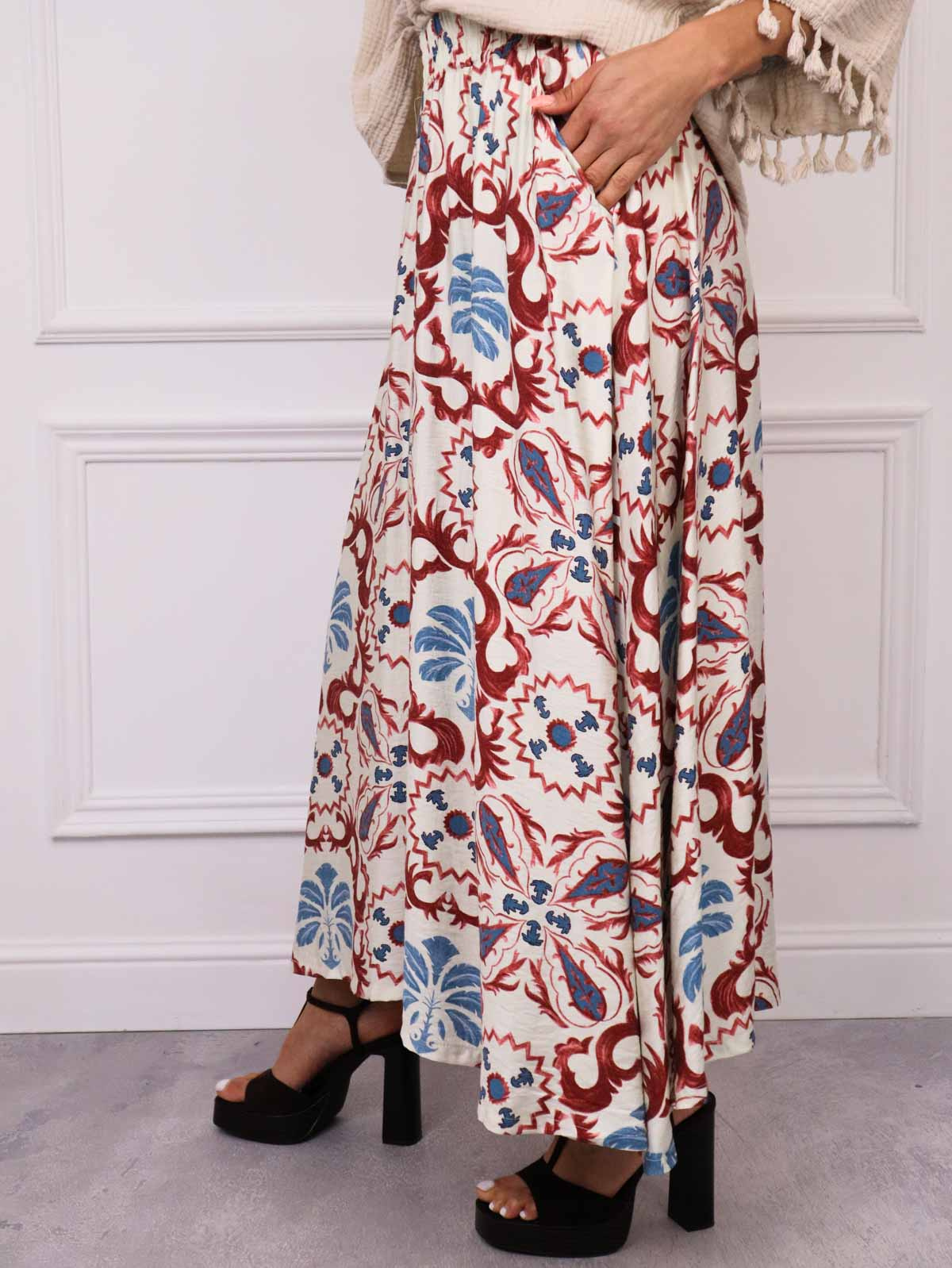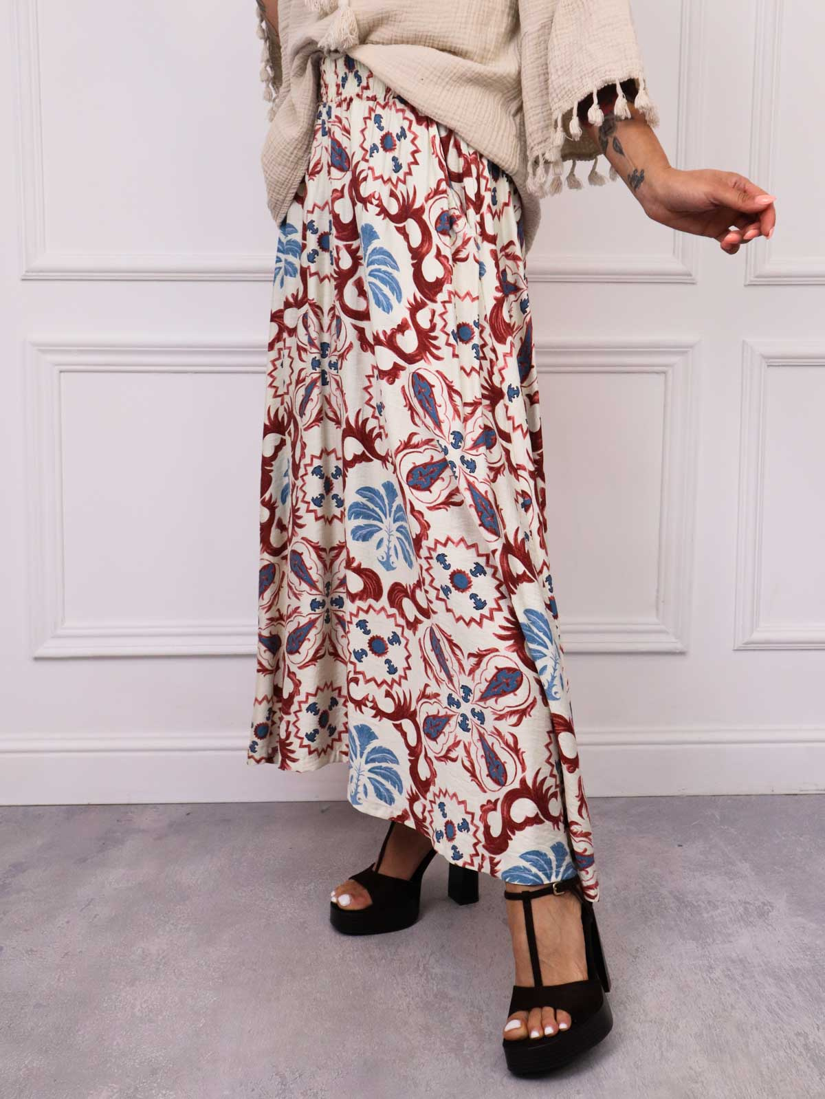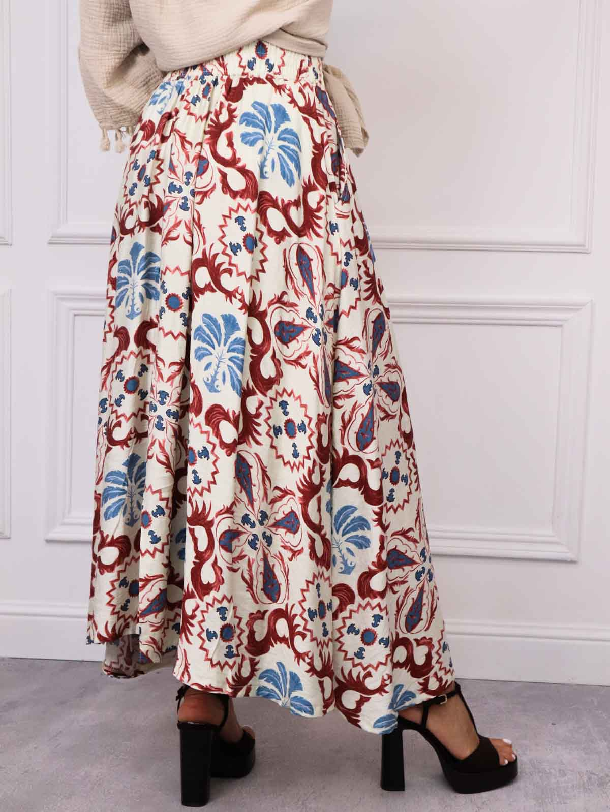 SPÓDNICA MAXI WZORZYSTA Z GUMĄ W PASIE- CZERWONA