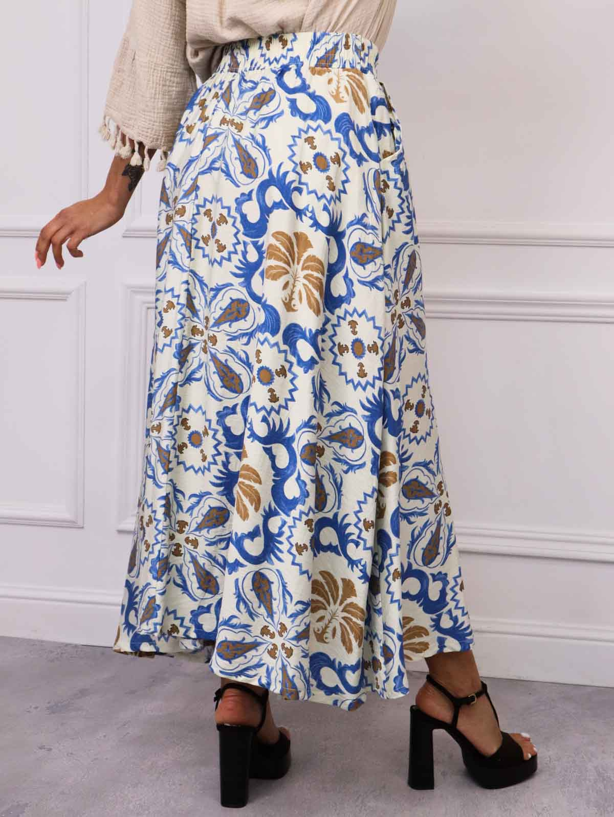 SPÓDNICA MAXI WZORZYSTA Z GUMĄ W PASIE- NIEBIESKA