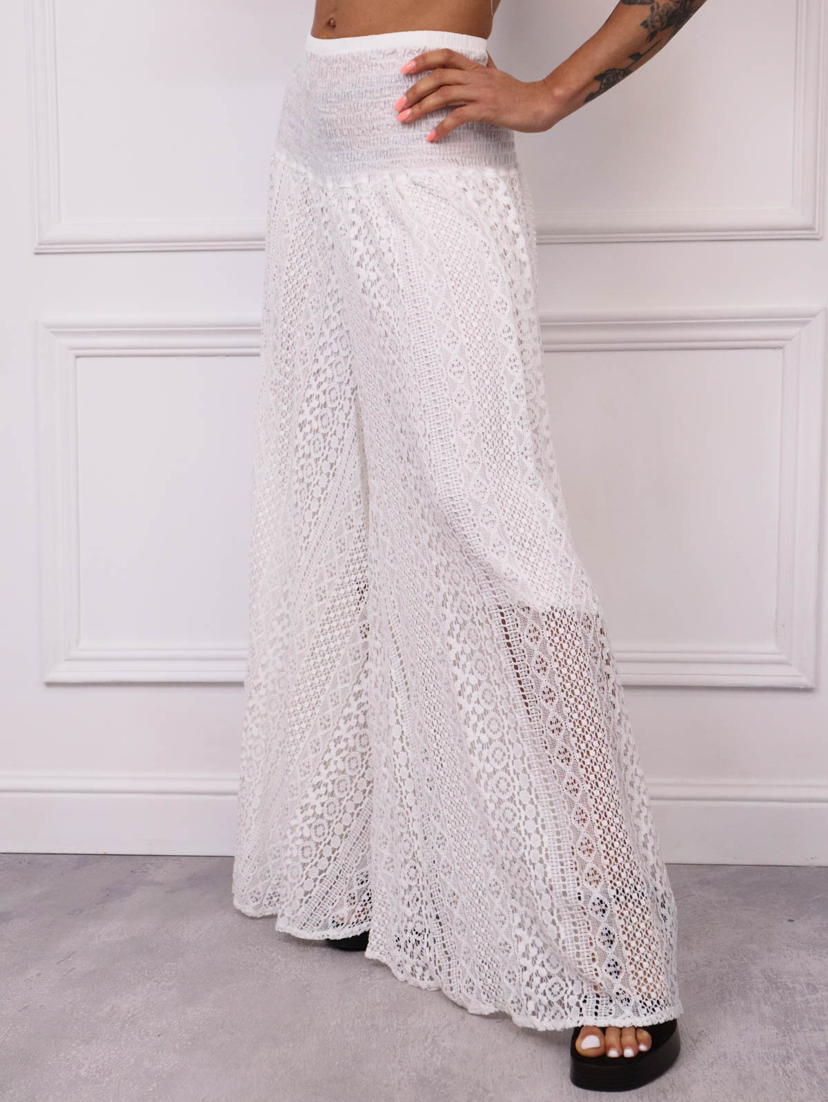 SPODNIE Z KORONKOWYMI NOGAWKAMI I SZEROKIM PASEM- BIAŁE