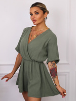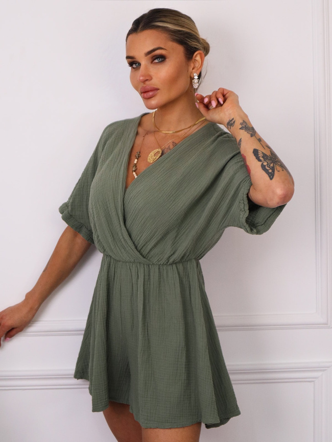 KOMBINEZON MUŚLINOWY Z KOPERTOWYM DEKOLTEM- ZIELONY