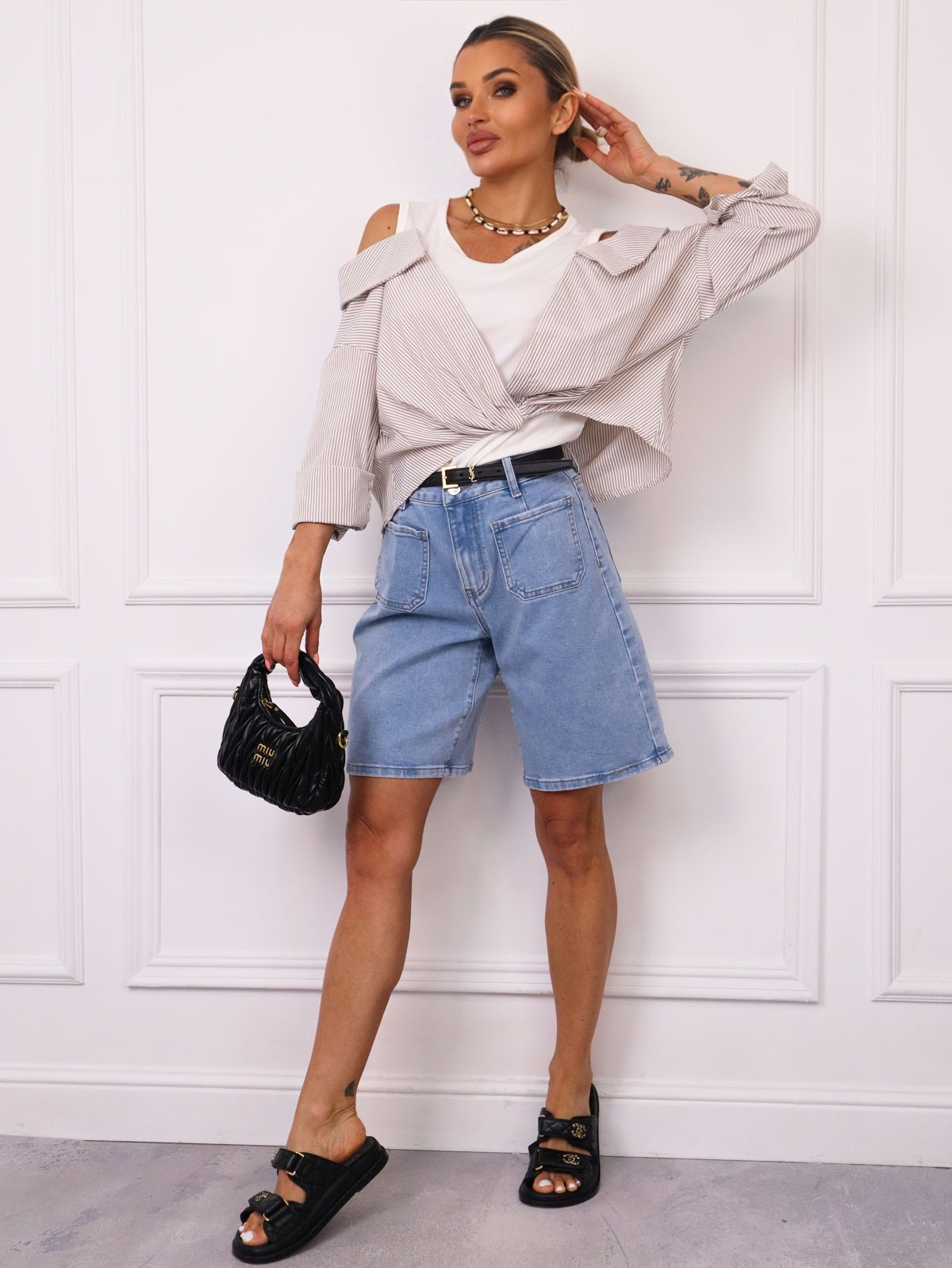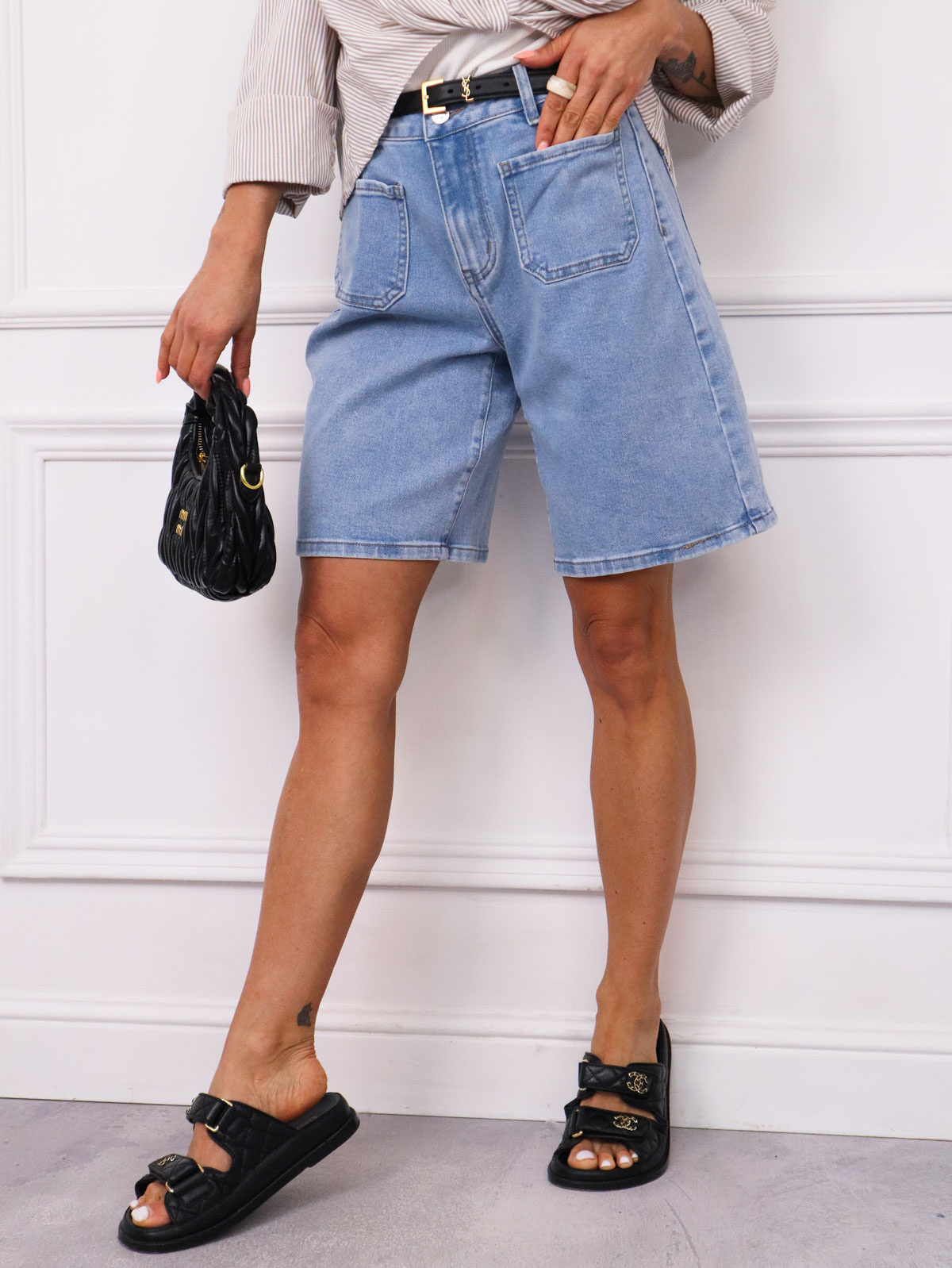 SZORTY JEANSOWE BERMUDY Z KIESZENIAMI Z PRZODU
