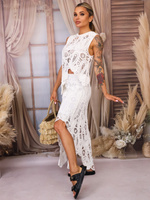 KOMPLET AŻUROWY TOP ASYMETRYCZNY+ SPÓDNICA Z WYCIĘCIEM- BIAŁY