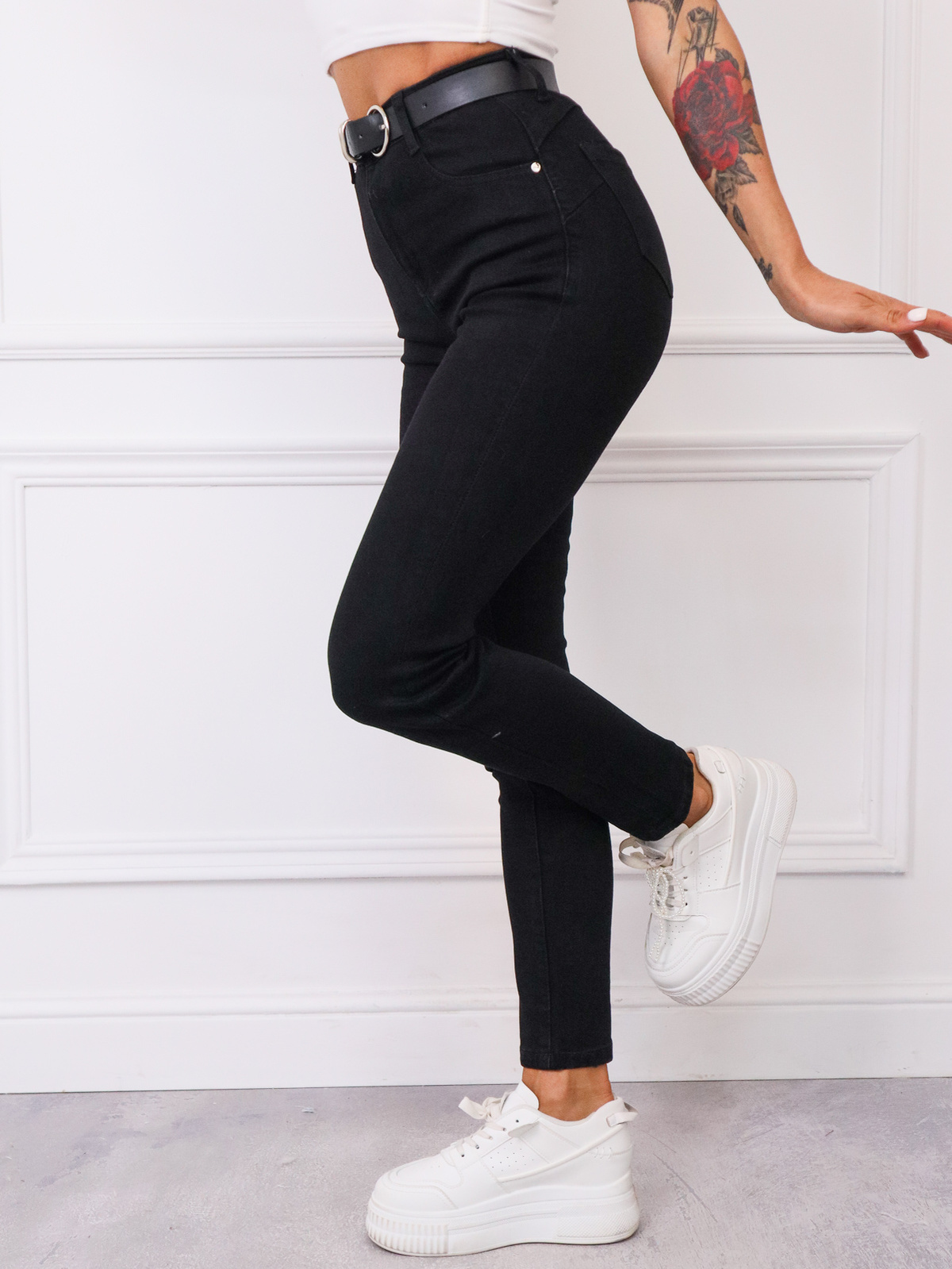 CZARNE SPODNIE SKINNY PUSH UP Z WYSOKIM STANEM