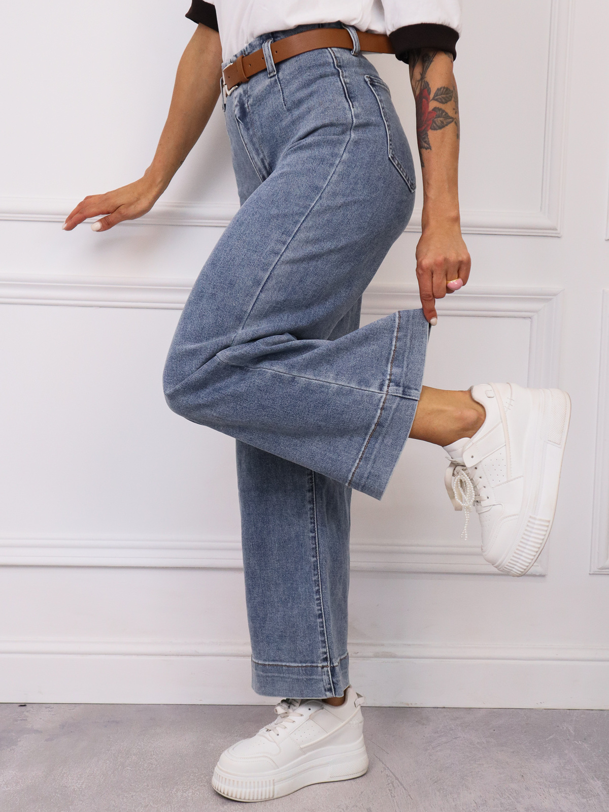 JEANSOWE SPODNIE Z SZEROKIMI NOGAWKAMI+ PASEK