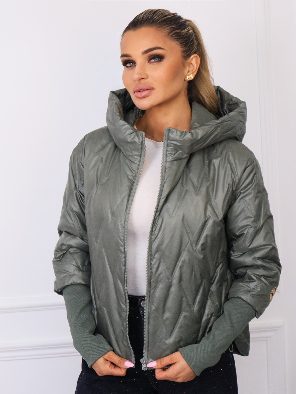 ASYMETRYCZNA KURTKA PIKOWANA ZE ŚCIAGACZAMI NA RĘKAWACH- KHAKI