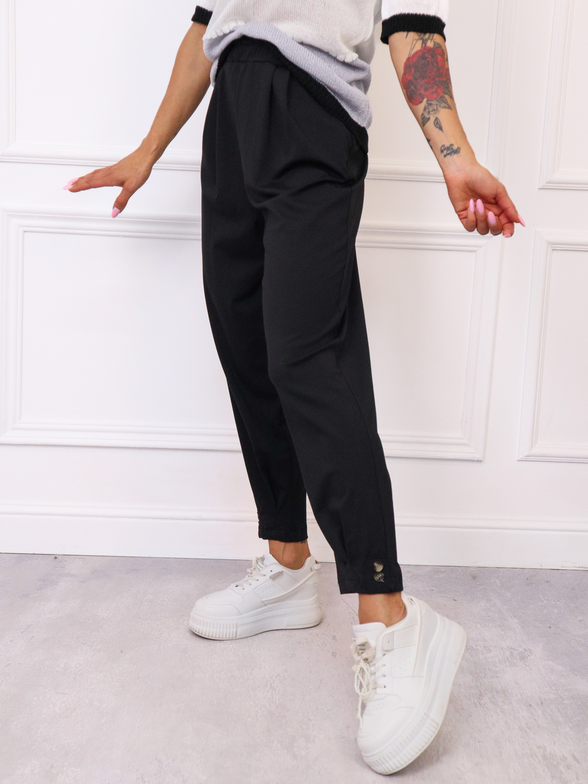 SPODNIE MATERIAŁOWE Z OZDOBNYMI GUZIKAMI NA DOLE NOGAWEK- CZARNE