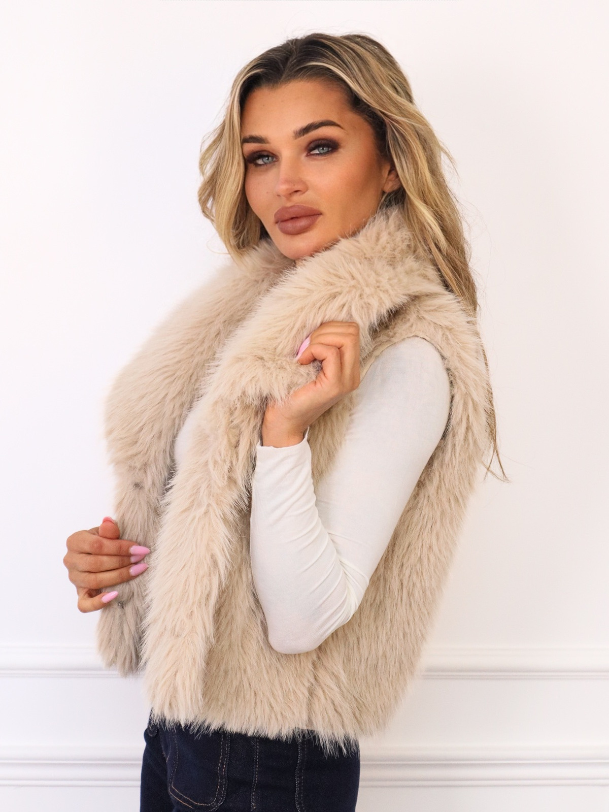 KAMIZELKA FUTRZANA ZAPINANA NA HAFTKI- BEŻOWA