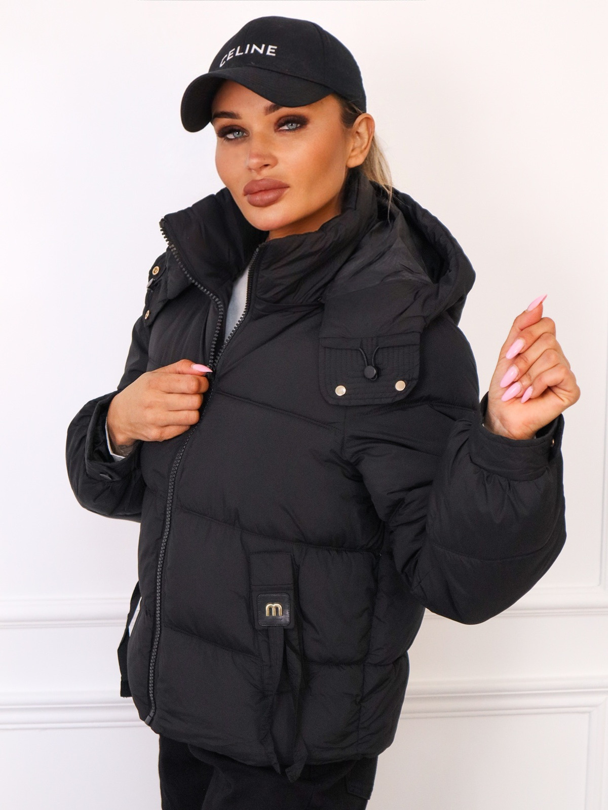 KURTKA PIKOWANA Z OZDOBNYMI NASZYWKAMI PRZY KIESZANIACH- CZARNA