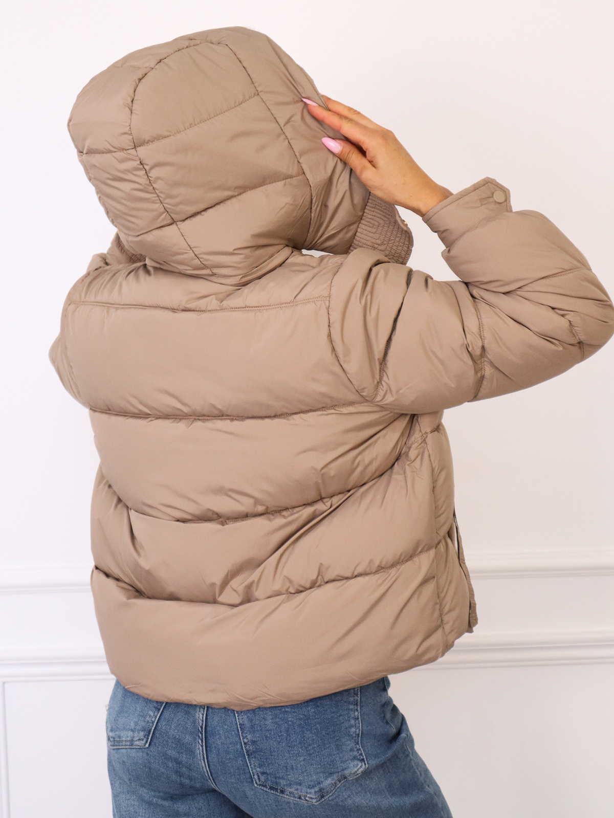 KURTKA PIKOWANA Z OZDOBNYMI NASZYWKAMI PRZY KIESZANIACH- CAPPUCCINO