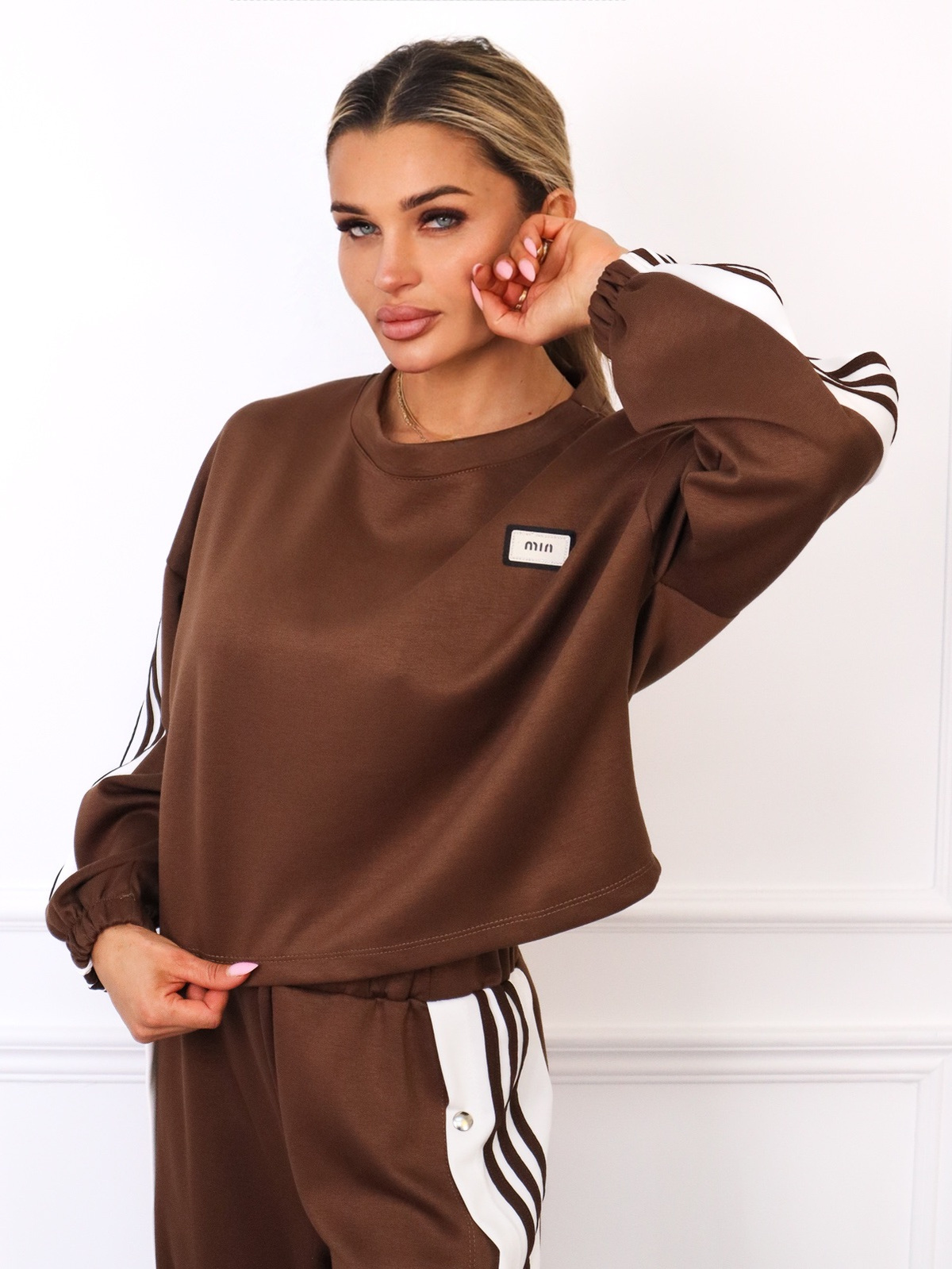 KOMPLET MASEŁKO BLUZA Z NASZYWKĄ+ SPODNIE ZAPINANE PO BOKACH- BRĄZOWY