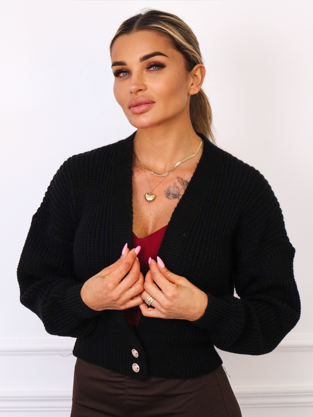 SWETER KARDIGAN ZAPINANY NA GUZIKI- CZARNY