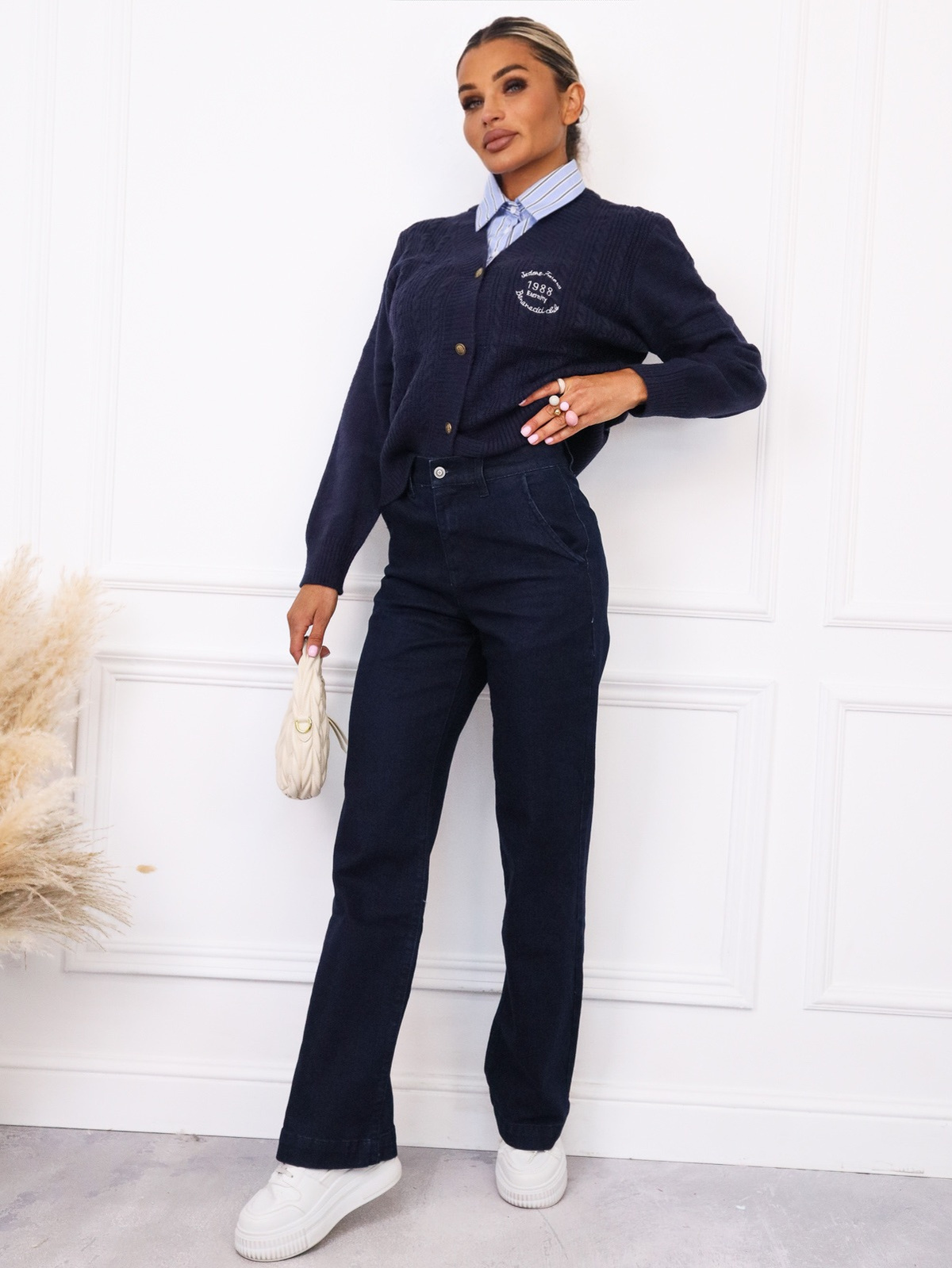 SPODNIE JEANSOWE Z SZEROKIMI NOGAWKAMI I IMITACJĄ KIESZENI Z TYŁU