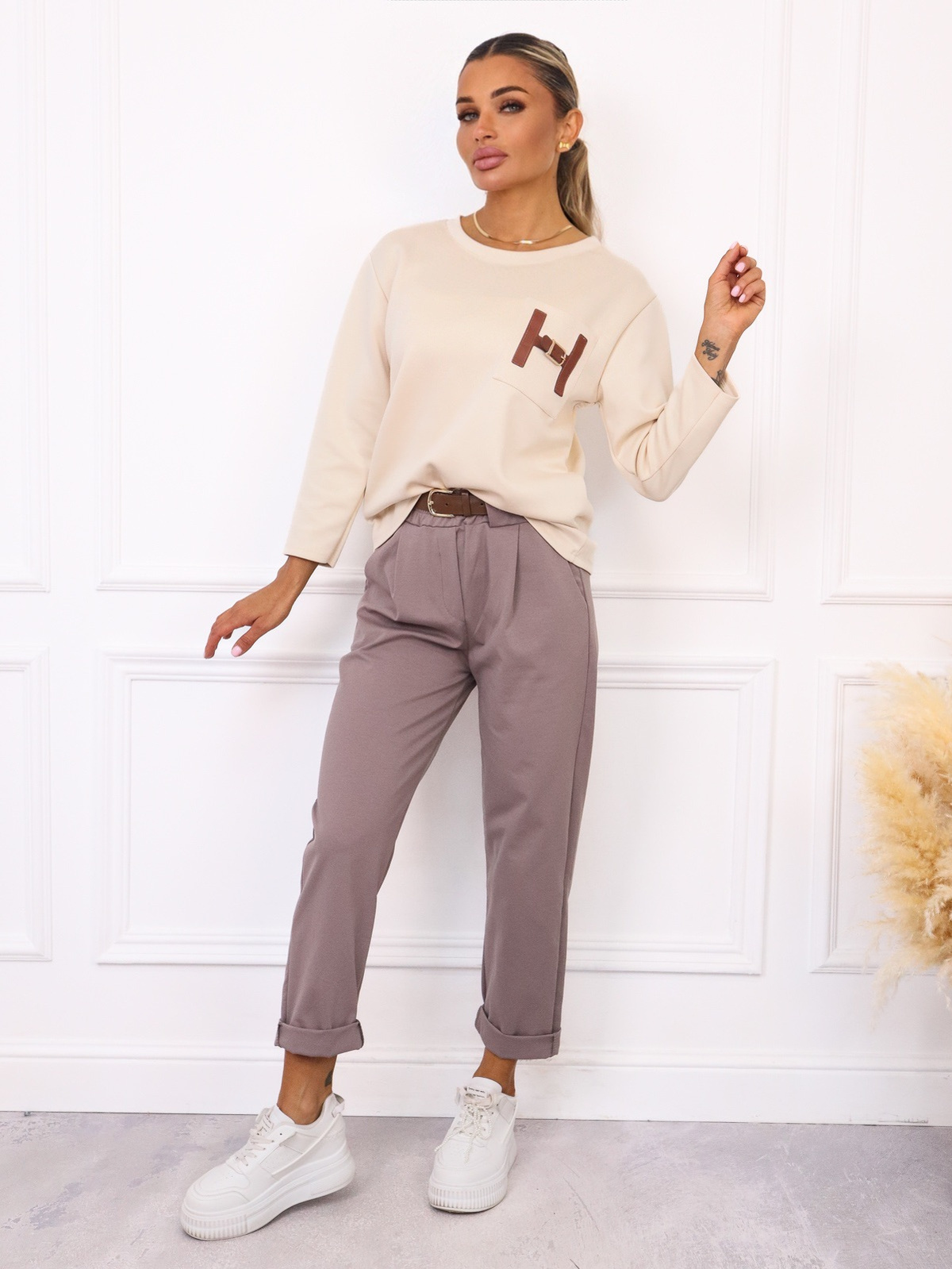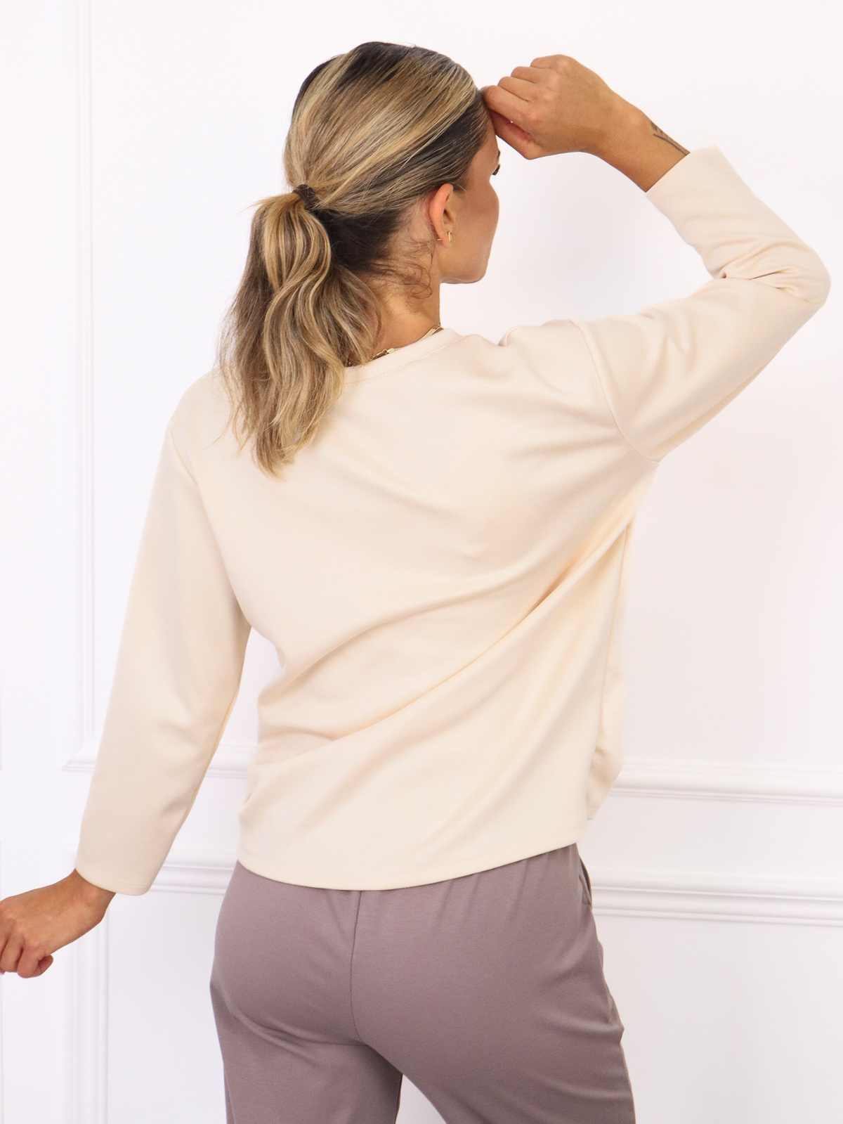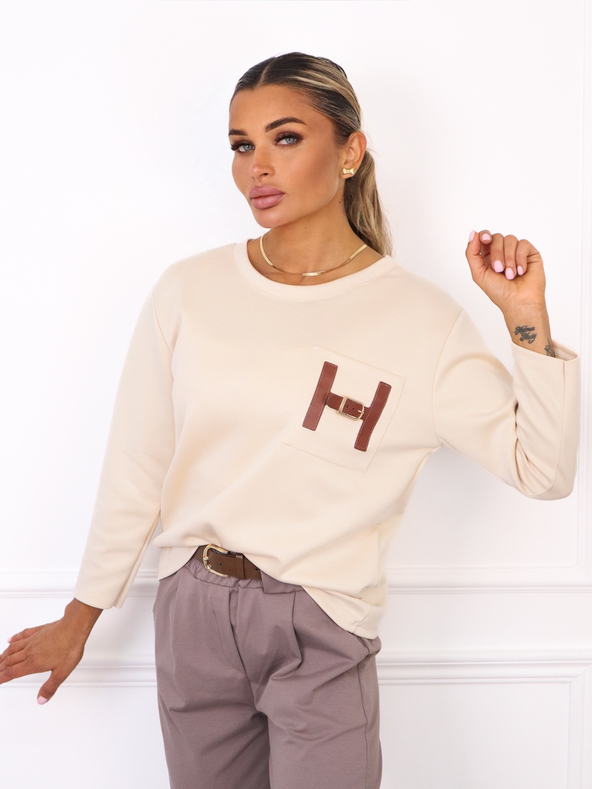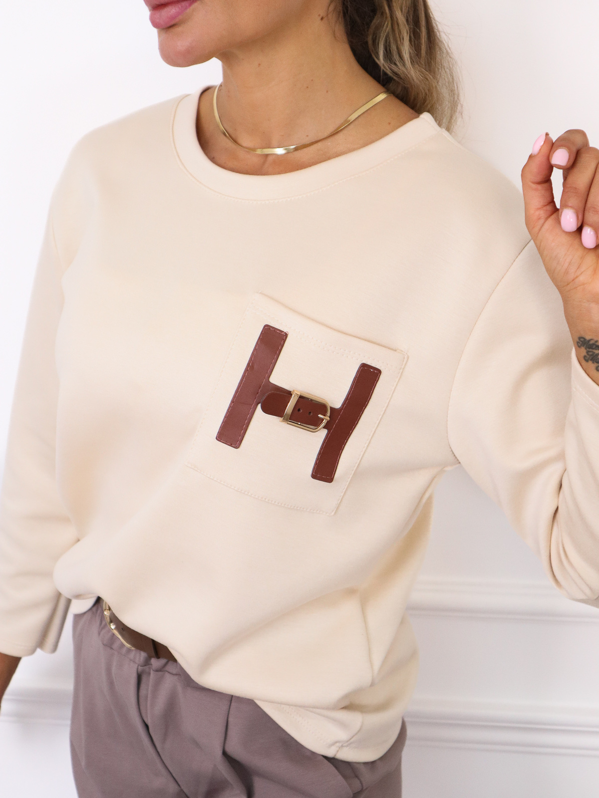 BLUZKA Z MASEŁKOWEGO MATERIAŁU Z KIESZENIĄ- BEŻOWA