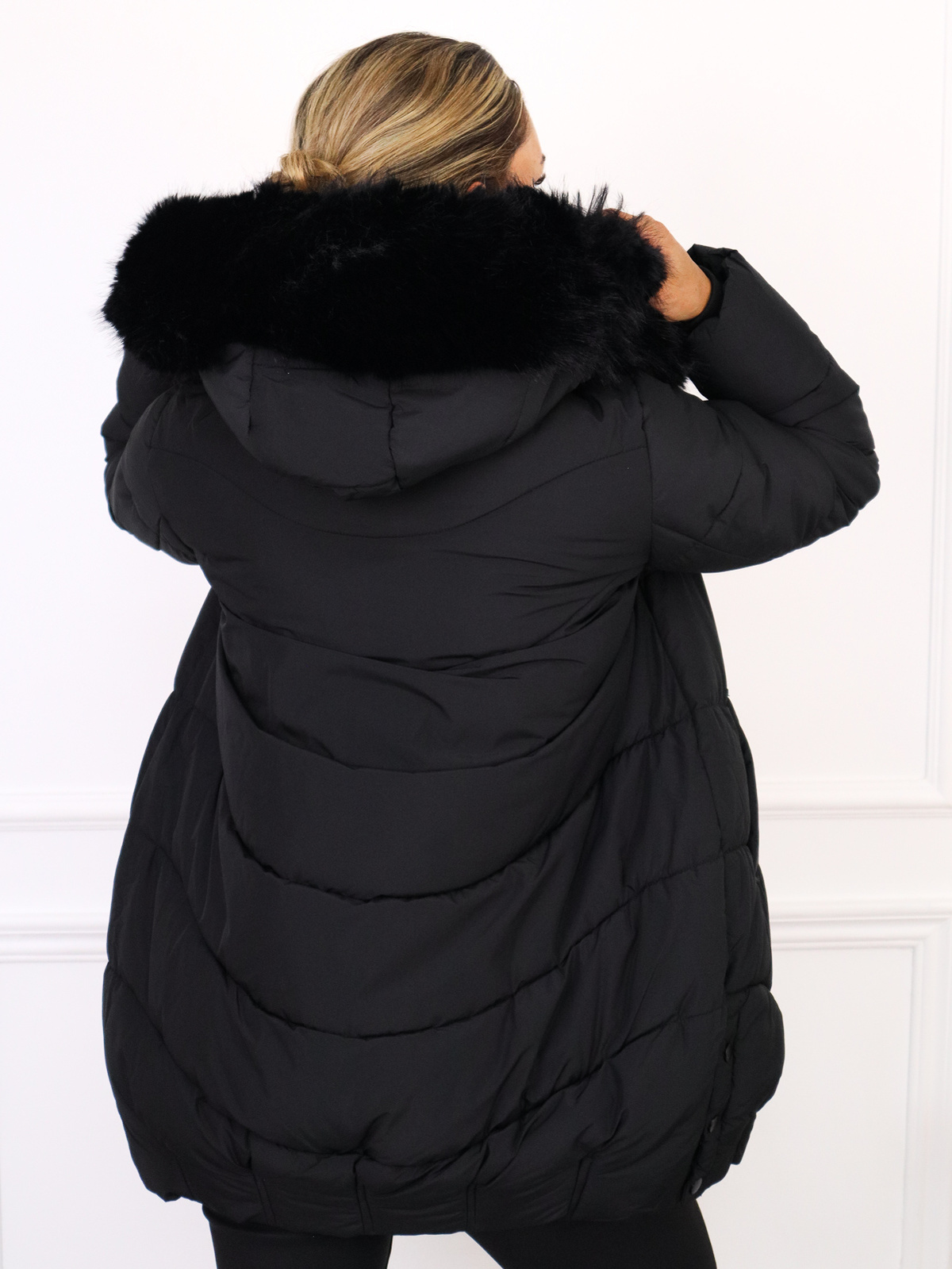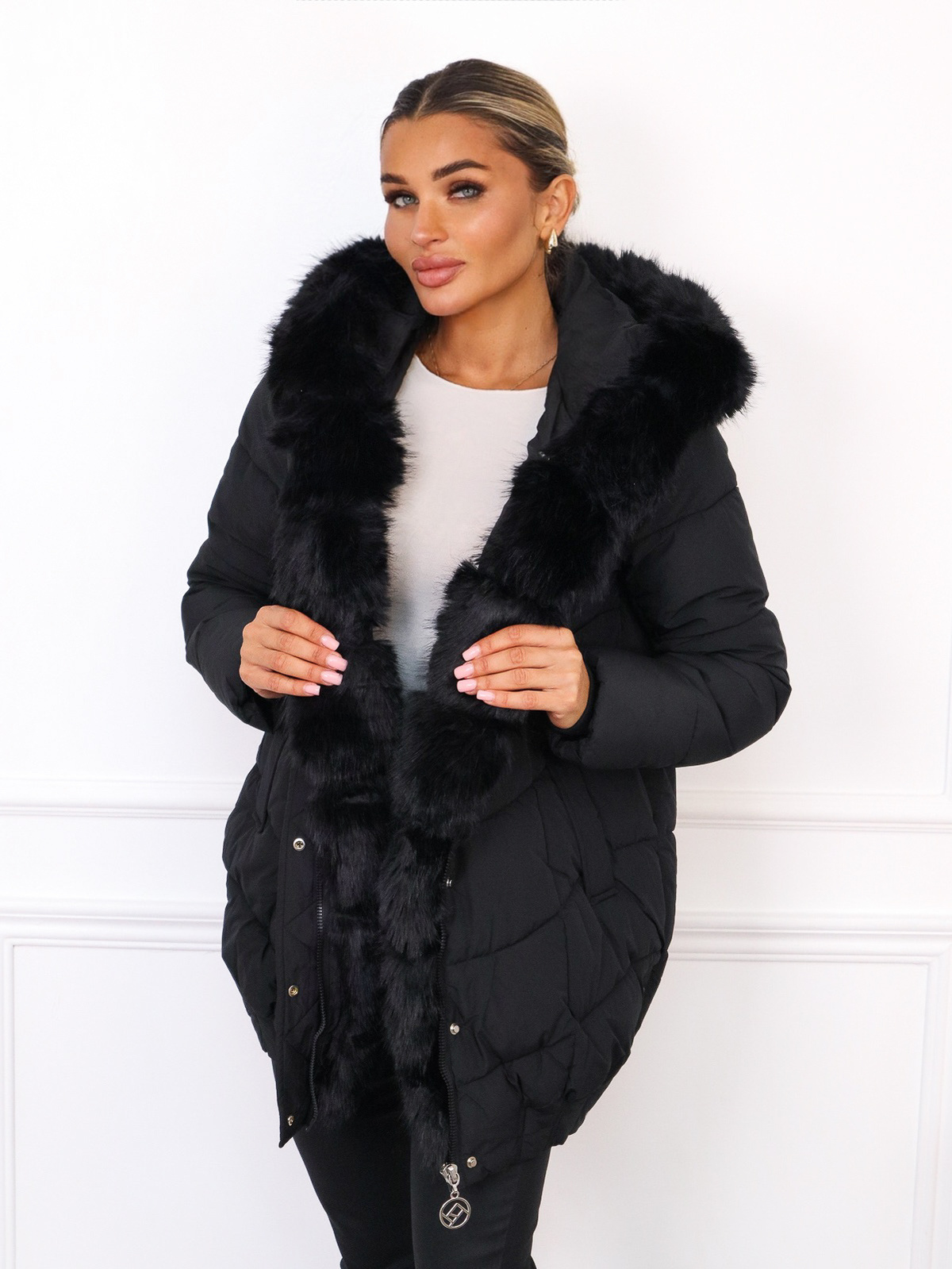 KURTKA PIKOWANA ZAPINANA NA ZAMEK I ZATRZASKI- CZARNA