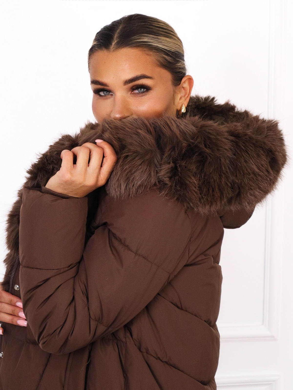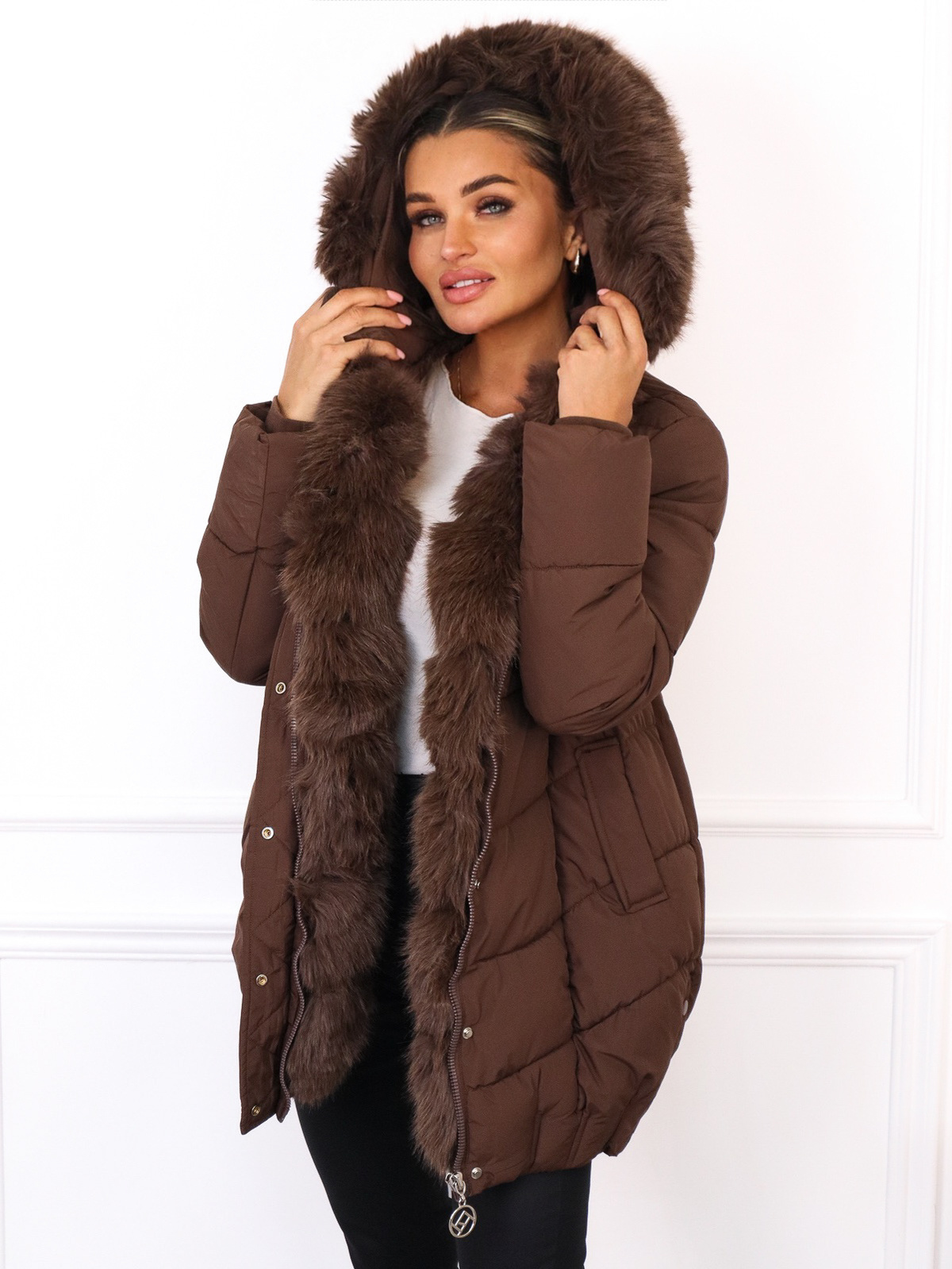 KURTKA PIKOWANA ZAPINANA NA ZAMEK I ZATRZASKI- CZEKOLADOWA