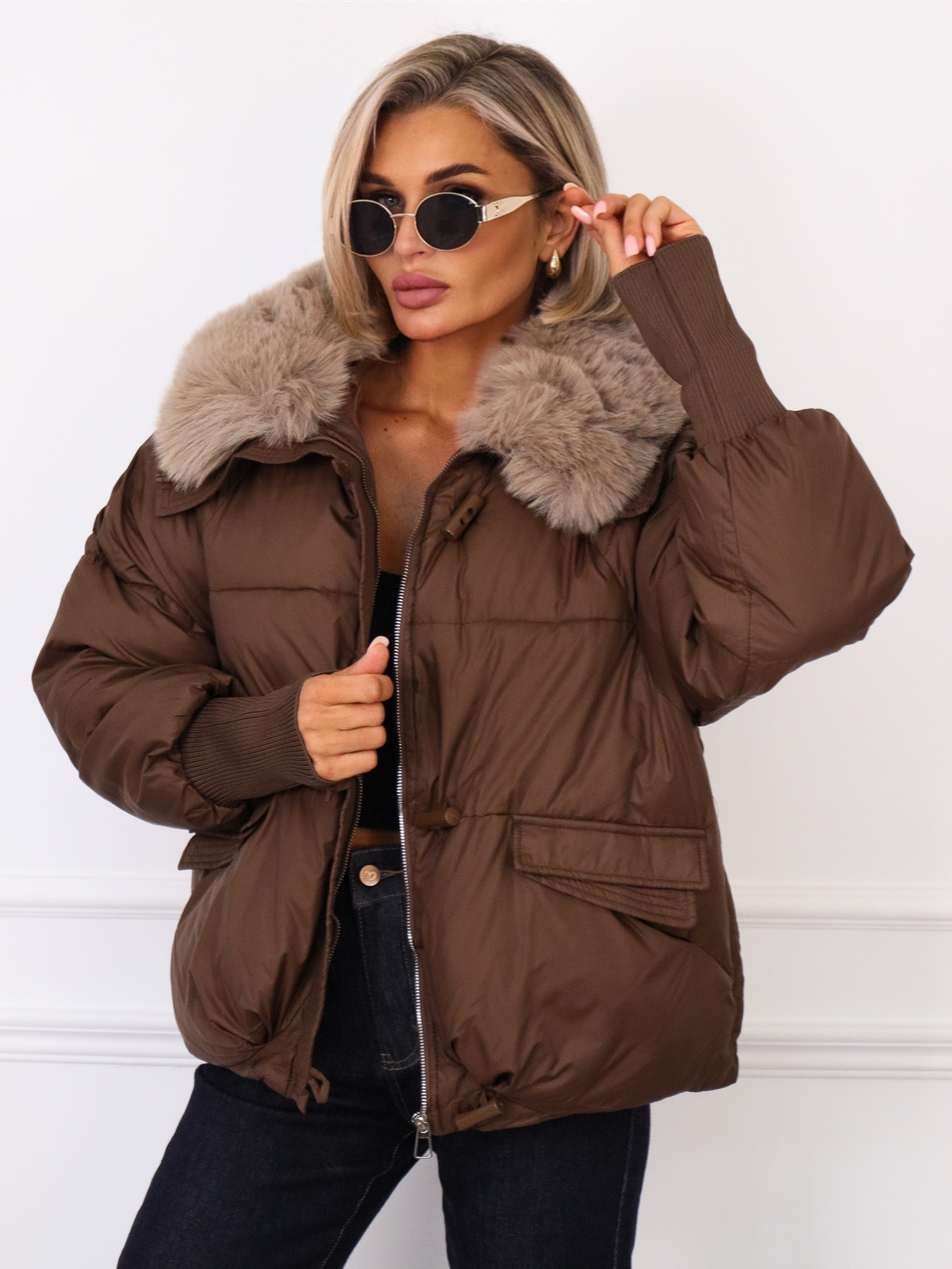 KURTKA ZIMOWA Z ODPINANYM FUTERKIEM- CZEKOLADOWA