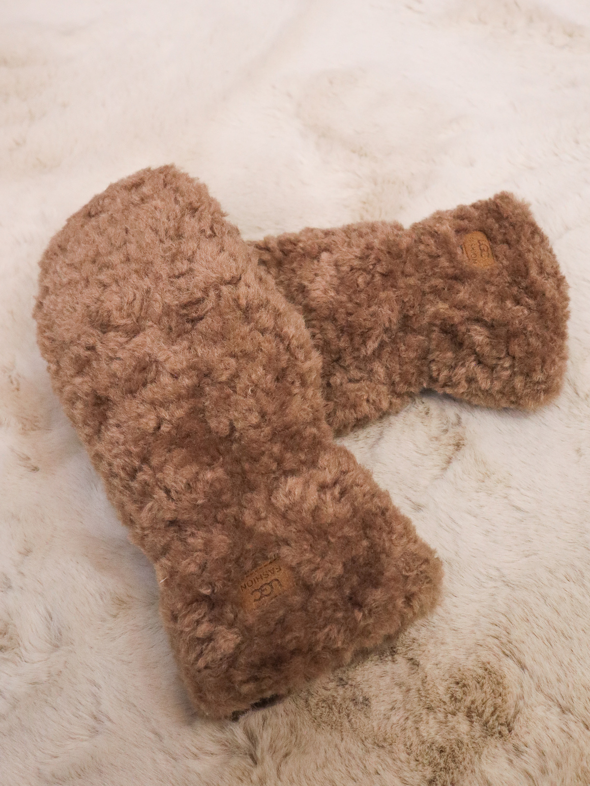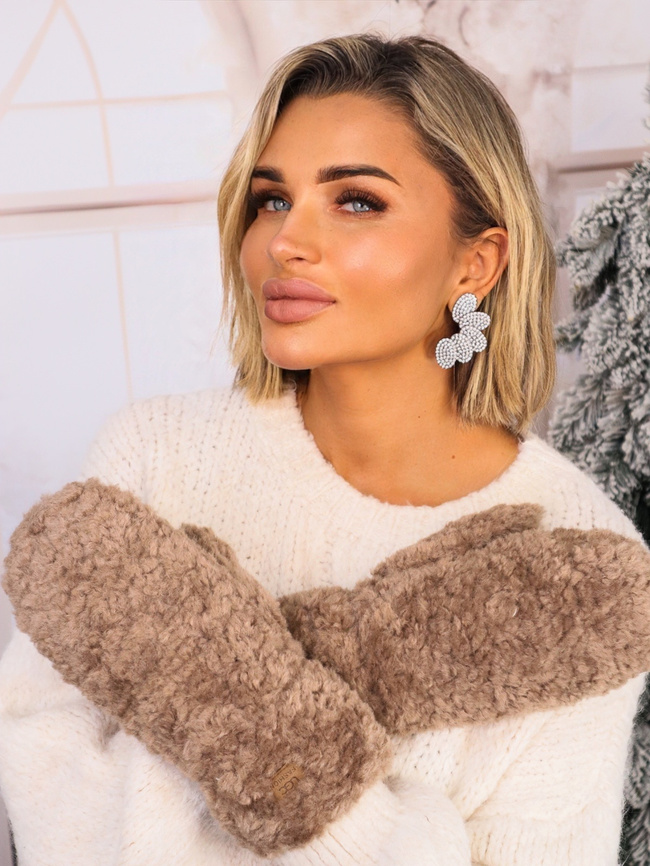 RĘKAWICZKI FUTRZANE NA JEDEN PALEC Z LOGIEM- BRĄZOWE