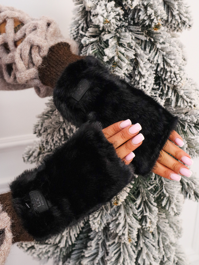 RĘKAWICZKI FUTRZANE BEZ PALCÓW Z LOGO- CZARNY