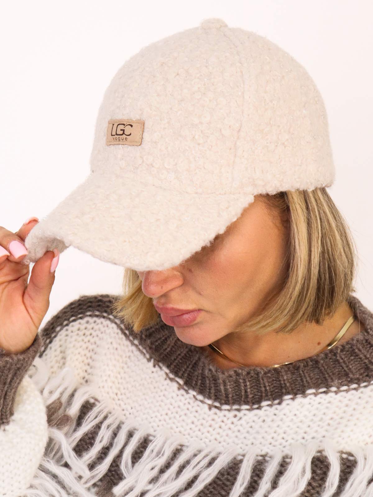Czapka z imitacji baranka z daszkiem to idealny wybór na zimowe dni, łączący styl i praktyczność. Czapka posiada delikatnie mieniące się srebrne nitki oraz regulację na rzepy, umożliwiające idealne dopasowanie do kształtu głowy.