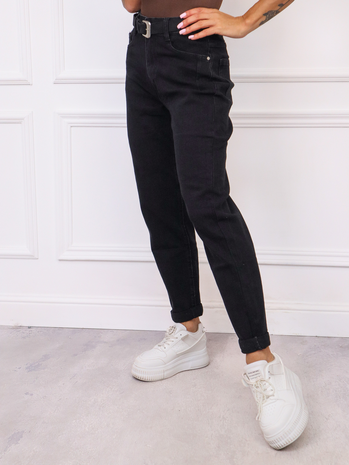 SPODNIE JEANSOWE PLUS SIZE MOM FIT Z PRZESZYCIAMI PRZY KIESZENIACH+ PASEK- CZARNE