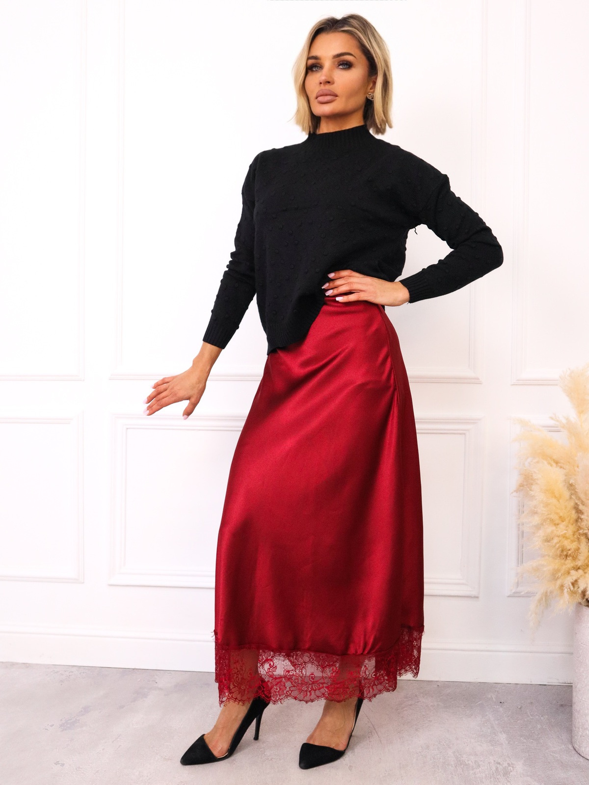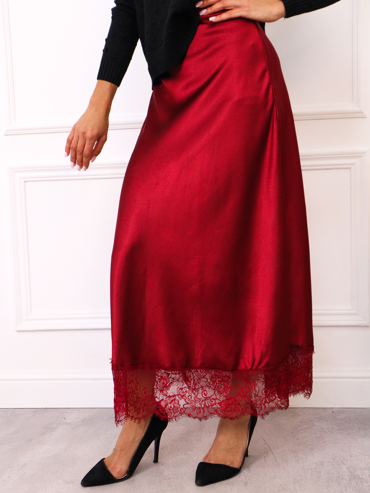 SPÓDNICA SATYNOWA MAXI ZAKOŃCZONA KORONKĄ- BORDOWA