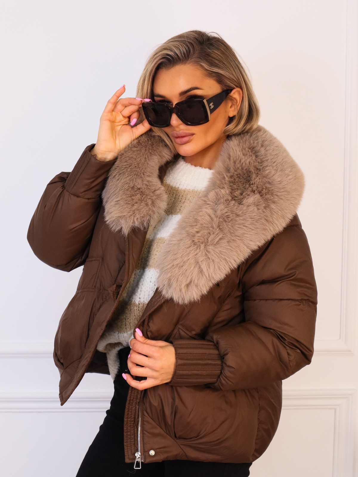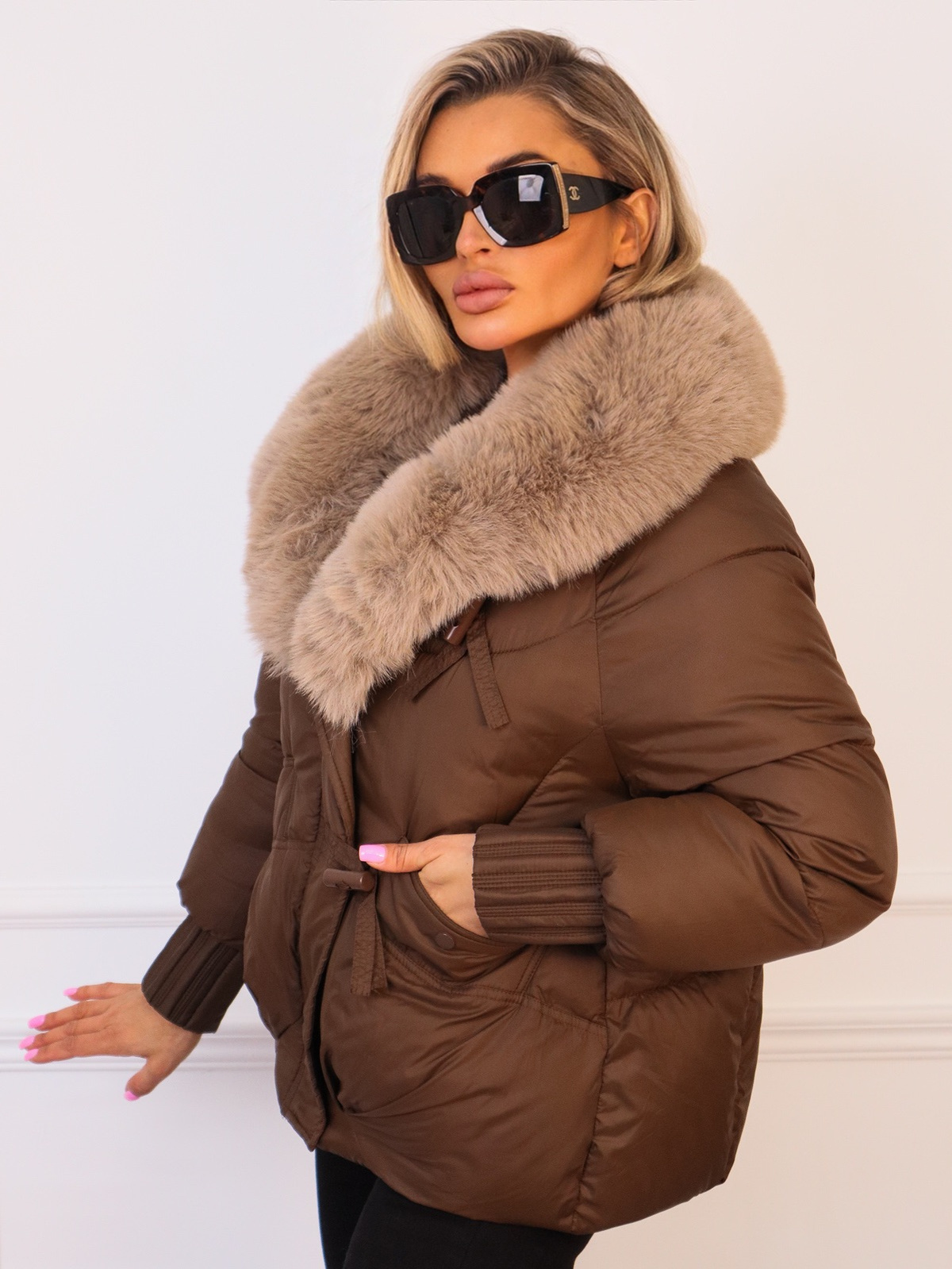 KURTKA ZIMOWA Z ODPINANYM FUTERKIEM- CZEKOLADOWA