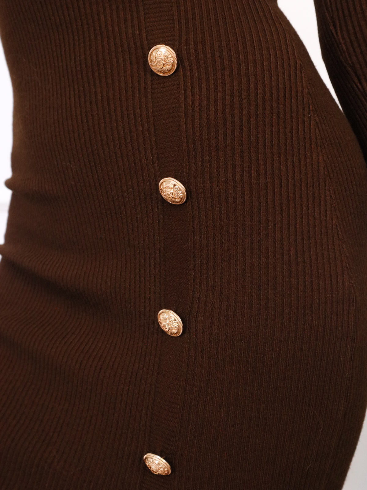SUKIENKA DZIANINOWA Z ROZCIĘCIEM I OZDOBNYMI GUZIKAMI- CZEKOLADOWA
