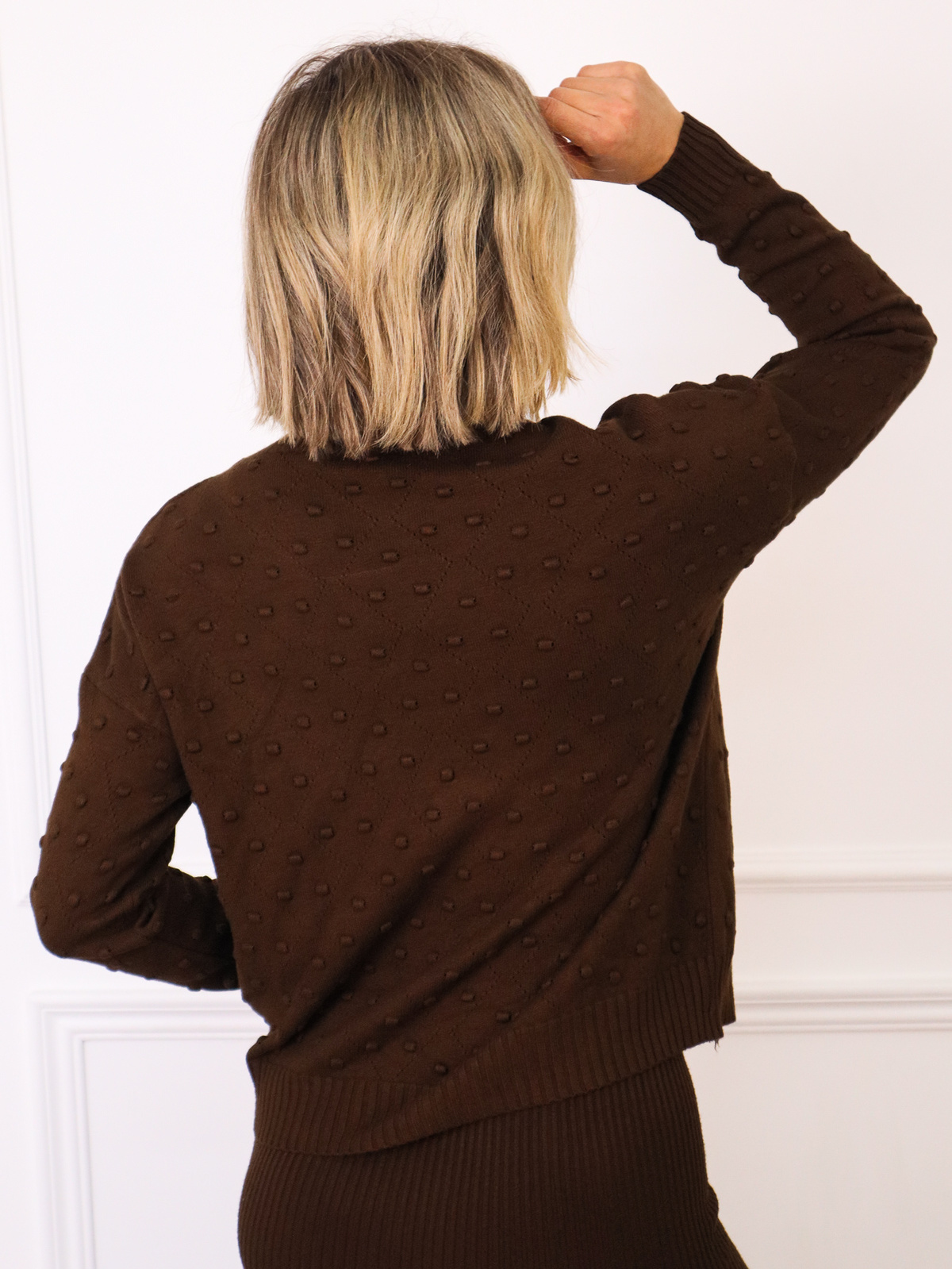 SWETER Z WYTŁACZANYMI KROPKAMI- CZEKOLADOWY