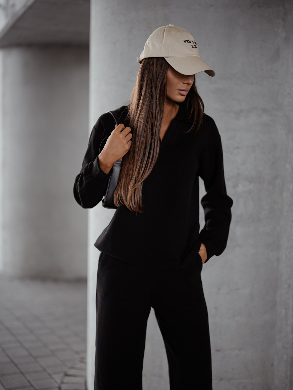 KOMPLET DZIANINOWY SWETERKOWA BLUZA+ SPODNIE- CZARNY