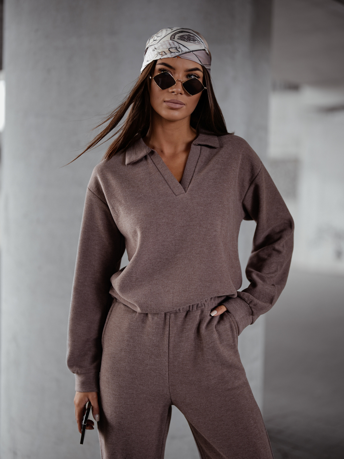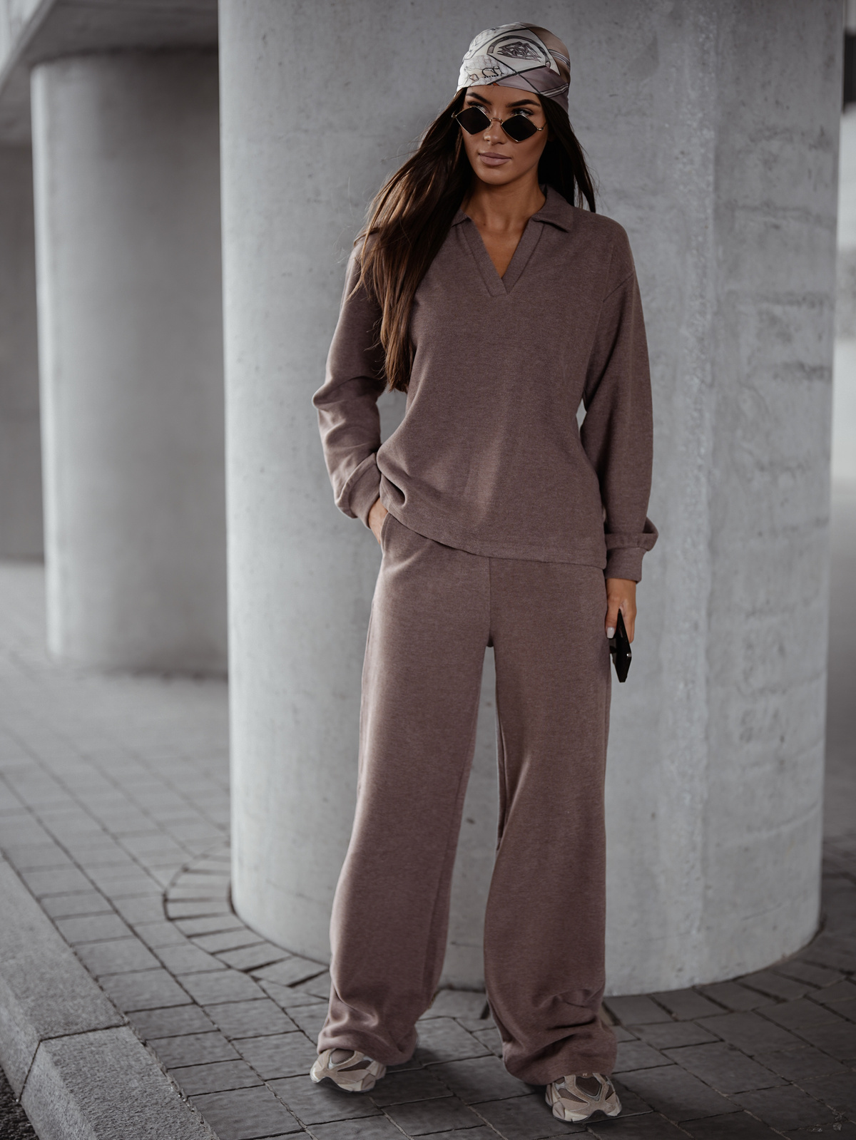 KOMPLET DZIANINOWY SWETERKOWA BLUZA+ SPODNIE- CAPPUCCINO