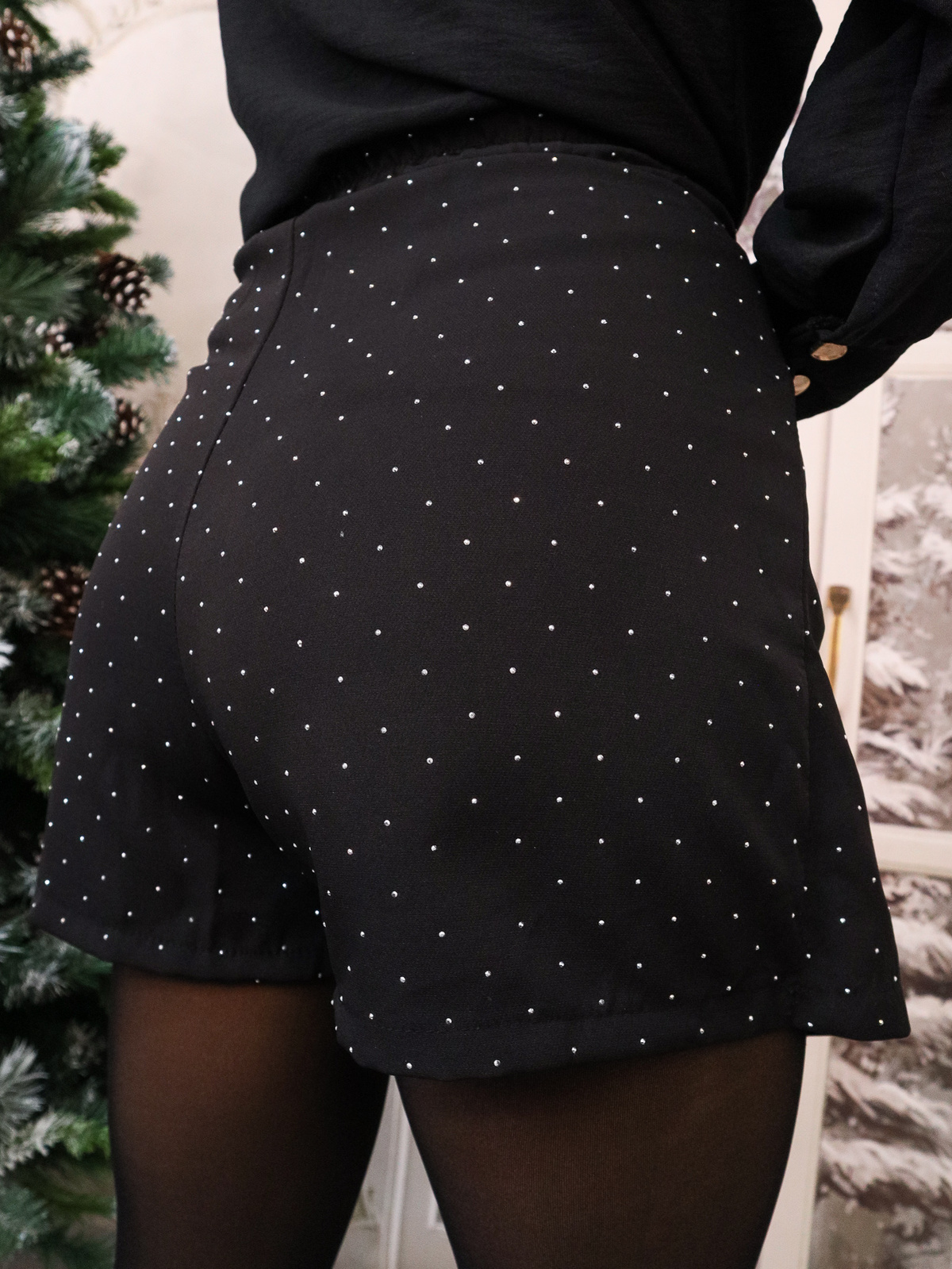 SPÓDNICO-SPODENKI ZDOBIONE CYRKONIAMI- CZARNE