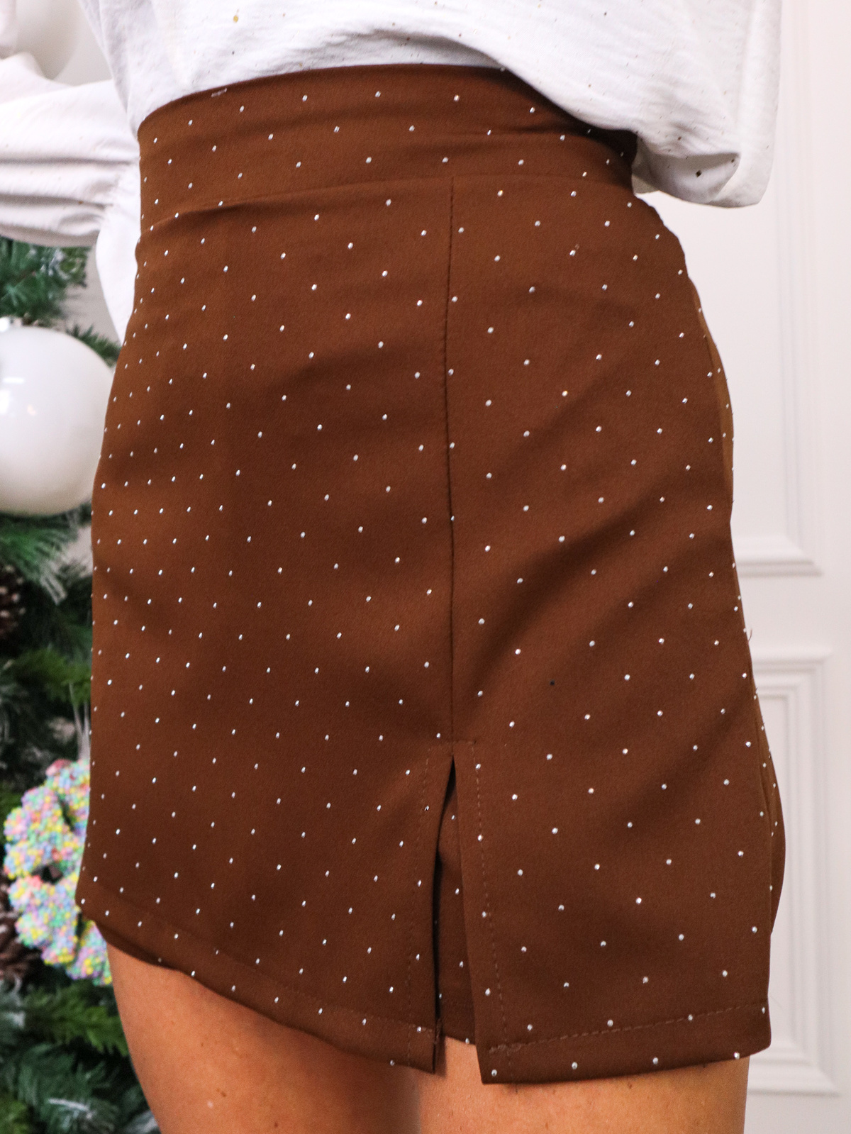 SPÓDNICO-SPODENKI ZDOBIONE CYRKONIAMI- CZEKOLADOWE