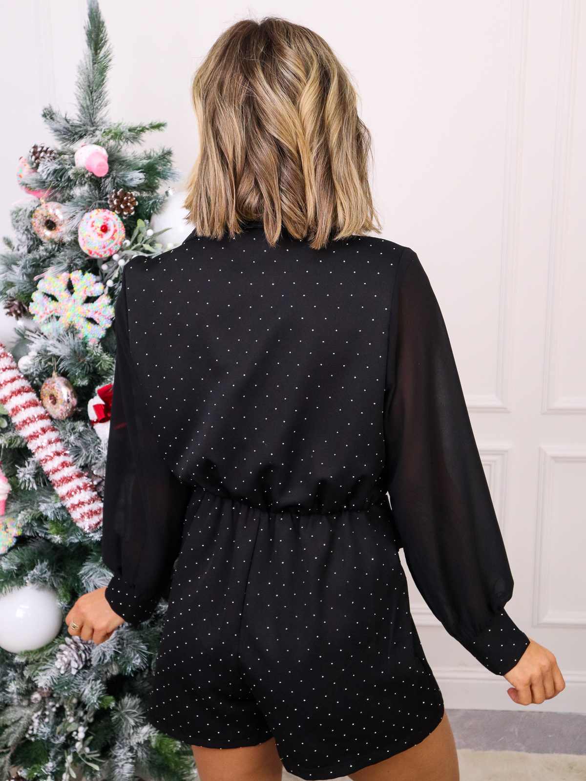 KOMBINEZON Z DIAMENCIKAMI I OZDOBNA KLAMRĄ- CZARNY